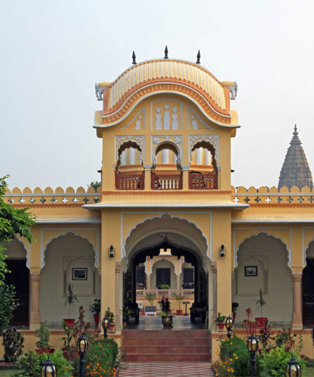 Built in the 18th century, this elegant, pale-yellow Indian palace was constructed during the later period of Bundela rule as a prominent royal seat within Orchha, the historic capital of the Bundela Rajput dynasty.
