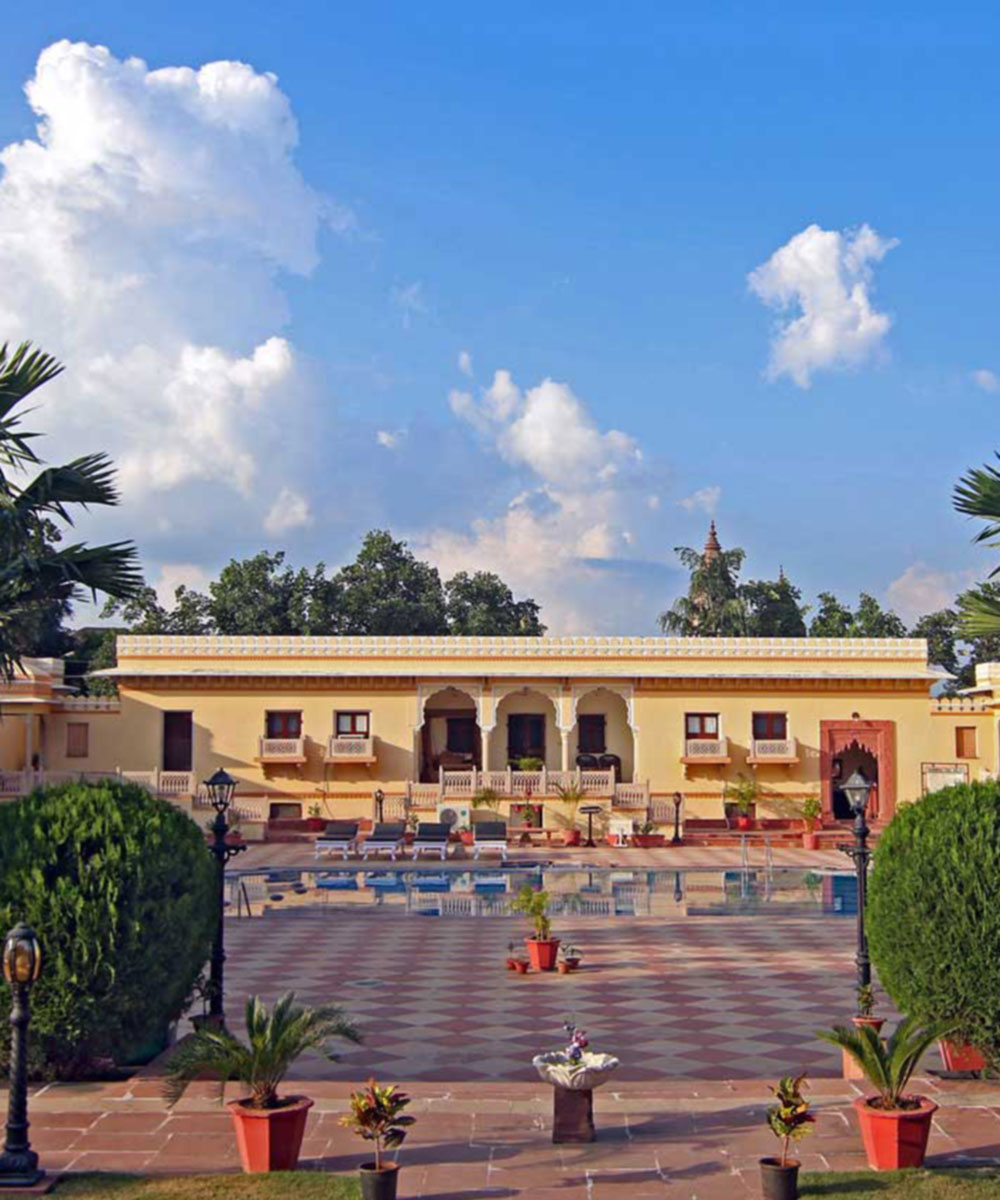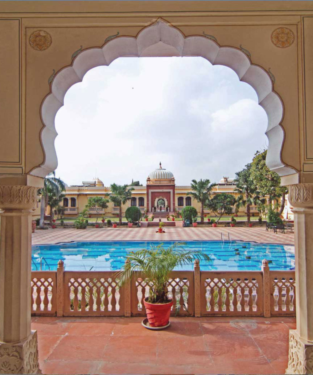 The 46 guest rooms offer serene grandeur, dark wood furniture is draped in richly patterned fabrics and the pale walls are tipped with ornately painted cornicing. Many of the rooms offer views out across the Fort Complex. The regal dining room serves meals that are designed to transport you to the era of kings, offering specialist Bundelkhandi dishes prepared from hand-picked ingredients grown in their organic garden; while broader Indian, Asian and international options are also on offer. Outside, the large pool sits in the hotel’s courtyard, overlooking the surrounding countryside and nearby temples. Alongside this you’ll find the spa, which offers Keralan Ayurvedic treatments together with yoga and mediation sessions.