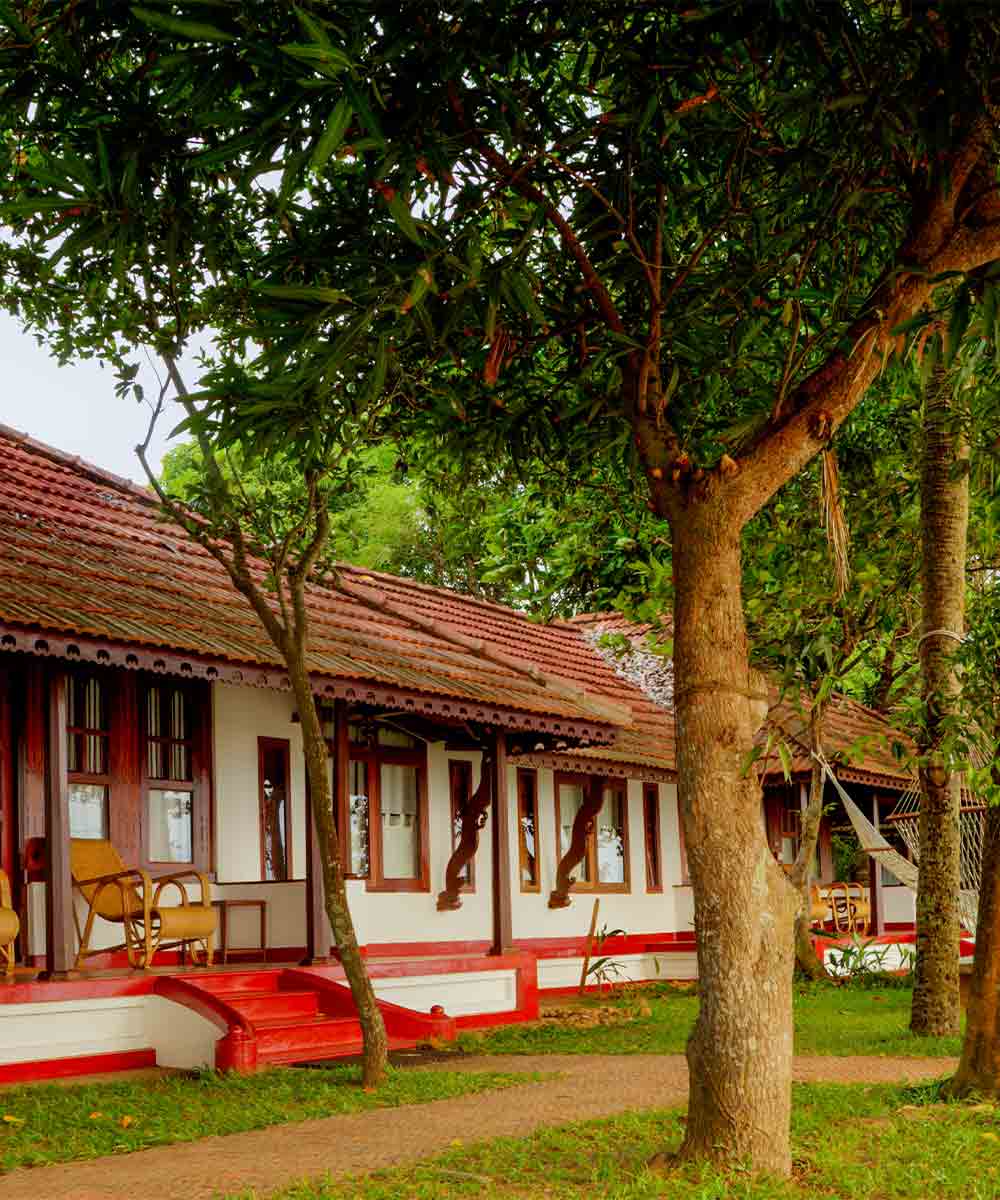Located on the eastern banks of Lake Vembanad in Kerala’s backwaters, a 30-minute drive from the town of Kottayam and over two hours from the nearest airport.