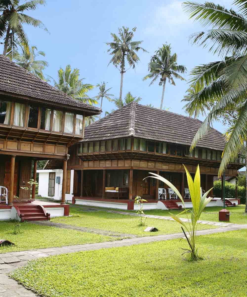 After arriving by boat, you will be welcomed into a tenderly reconstructed tharavad ancestral home, the old mansions that once housed the nobility of the land, reassembled by local craftspeople.