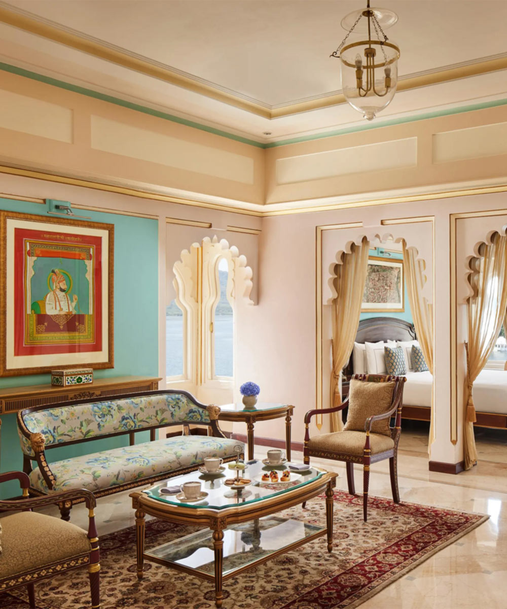• Each of the hotel’s rooms boasts its own colour scheme, all showcasing traditional Indian designs