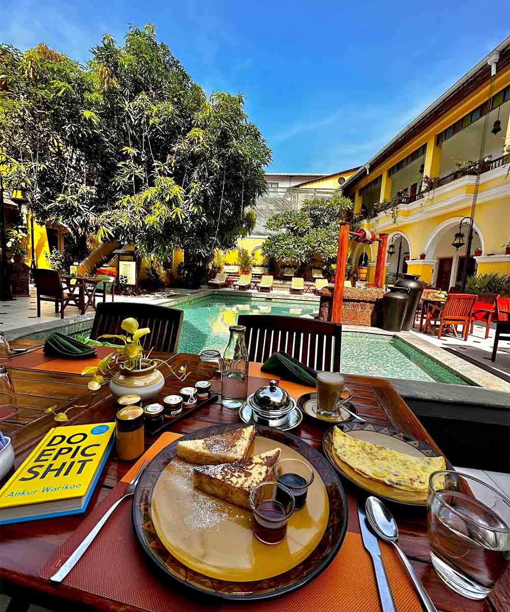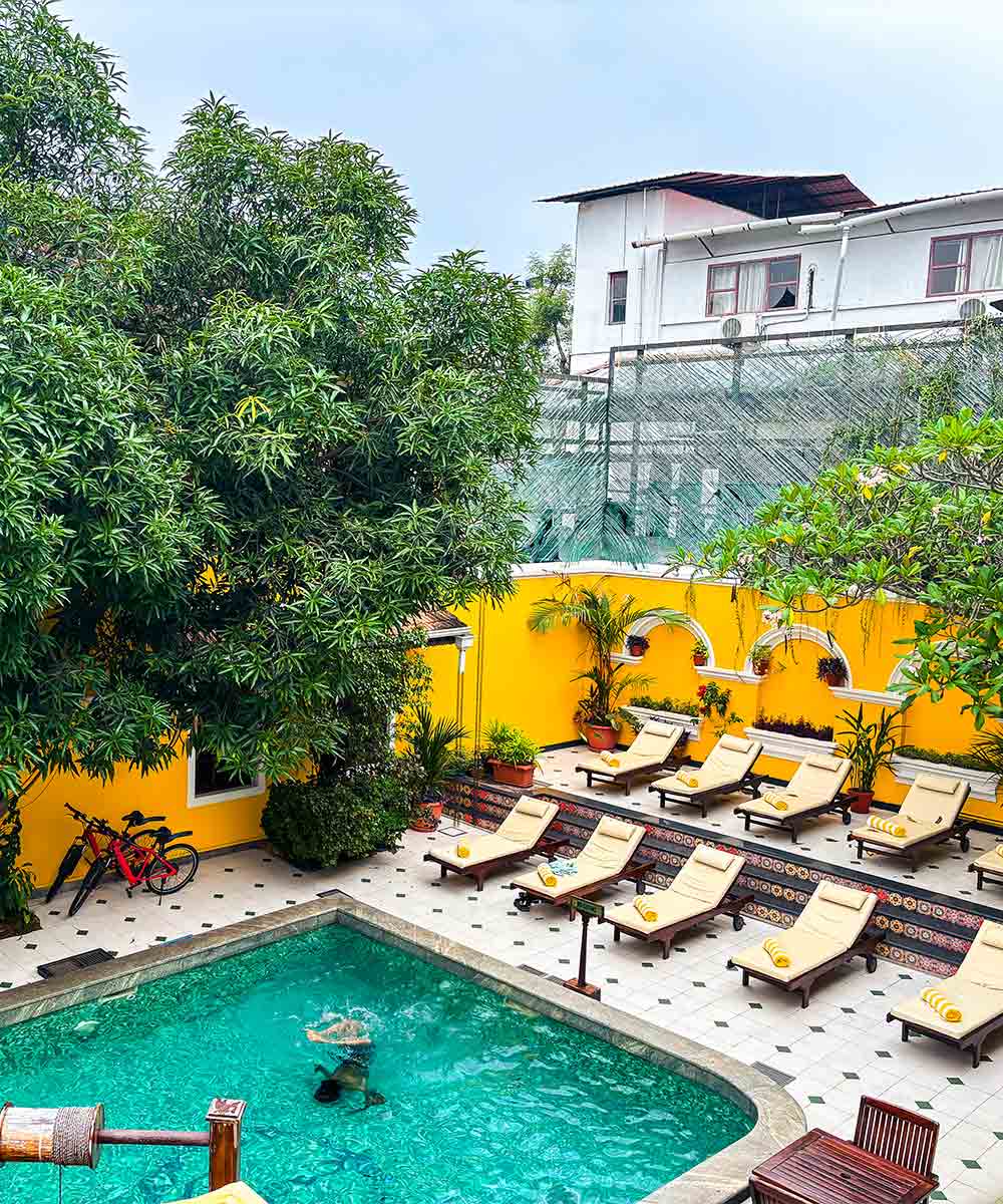 Take a dip in the calming pool that hides in a sunshine yellow courtyard away from the bustling streets. Explore the history on those streets with the hotel’s walking tours, and return to your spacious room every night having discovered Kochi’s wonderful culture.