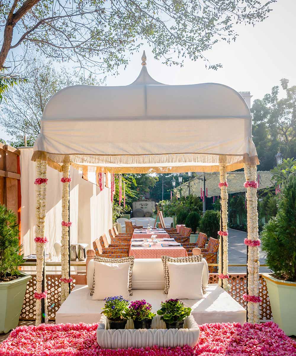 • A lavish property that celebrates Rajasthan’s Art Deco movement–we love the black and white decor of the inner veranda