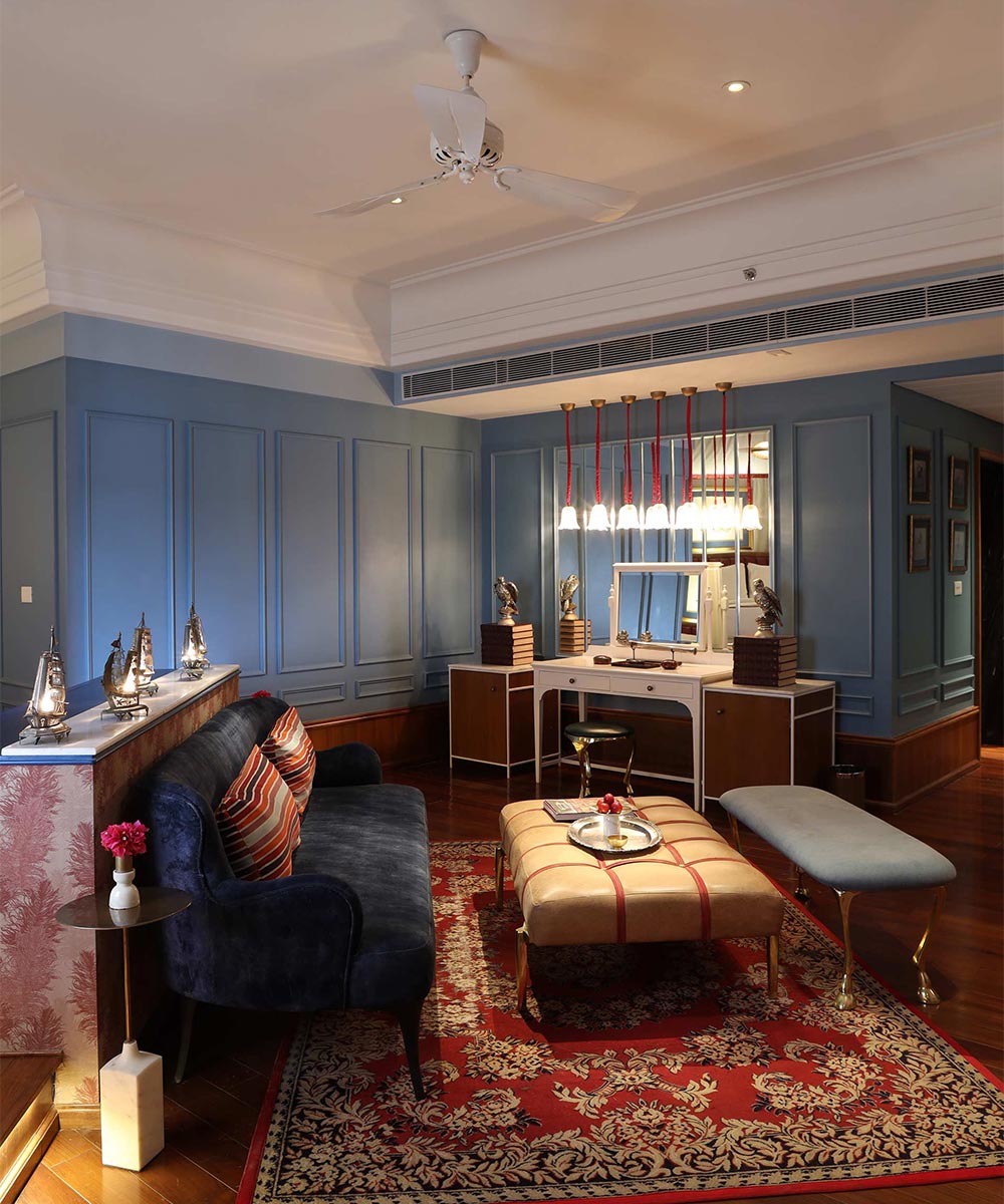 Curios and trinkets adorn the hotel, collected on the Maharaja’s travels, while Art Deco and avant garde details complete its chic design, from the capacious rooms, to the black and white tiled lobby, to the eye-catching red grand piano.