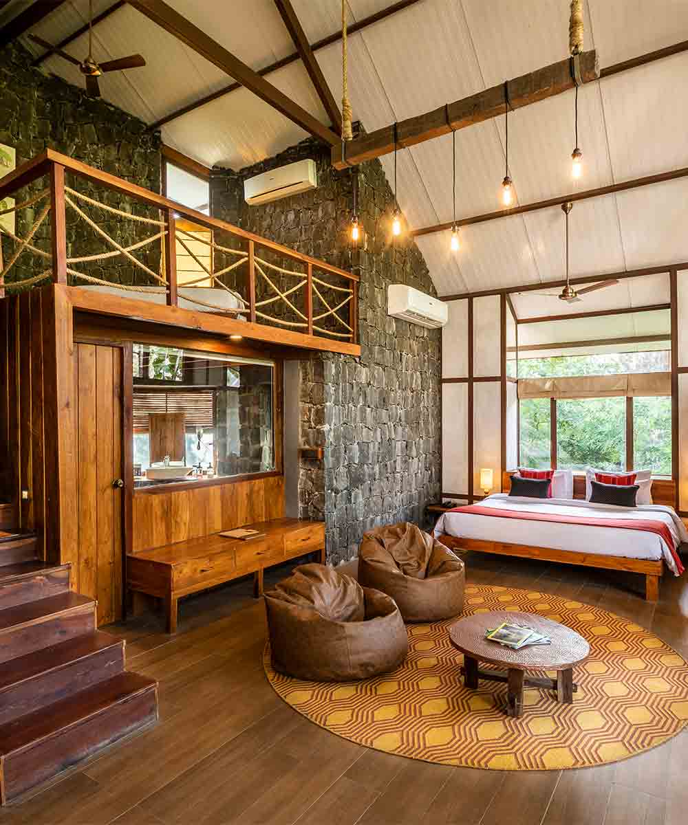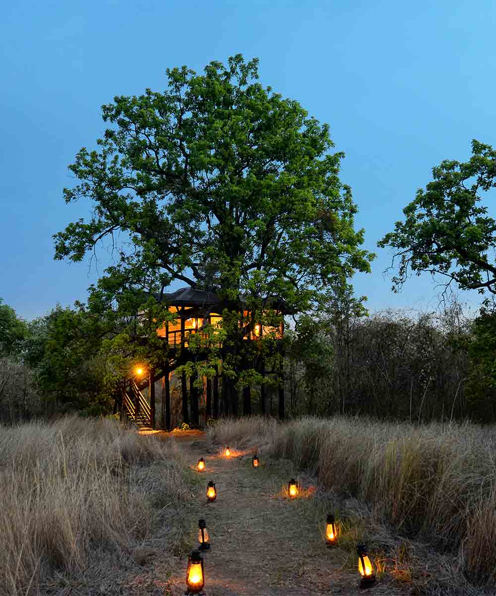 For truly adventurous spirits, Pench Tree Lodge’s six treehouses elevated high on stilts are the ideal place to live out their jungle dwelling daydreams. Those who prefer their feet closer to the ground can stay in one of the ten thoughtfully designed cottages. All rooms feature four-poster beds, air-conditioning and ensuite bathrooms with organic amenities.