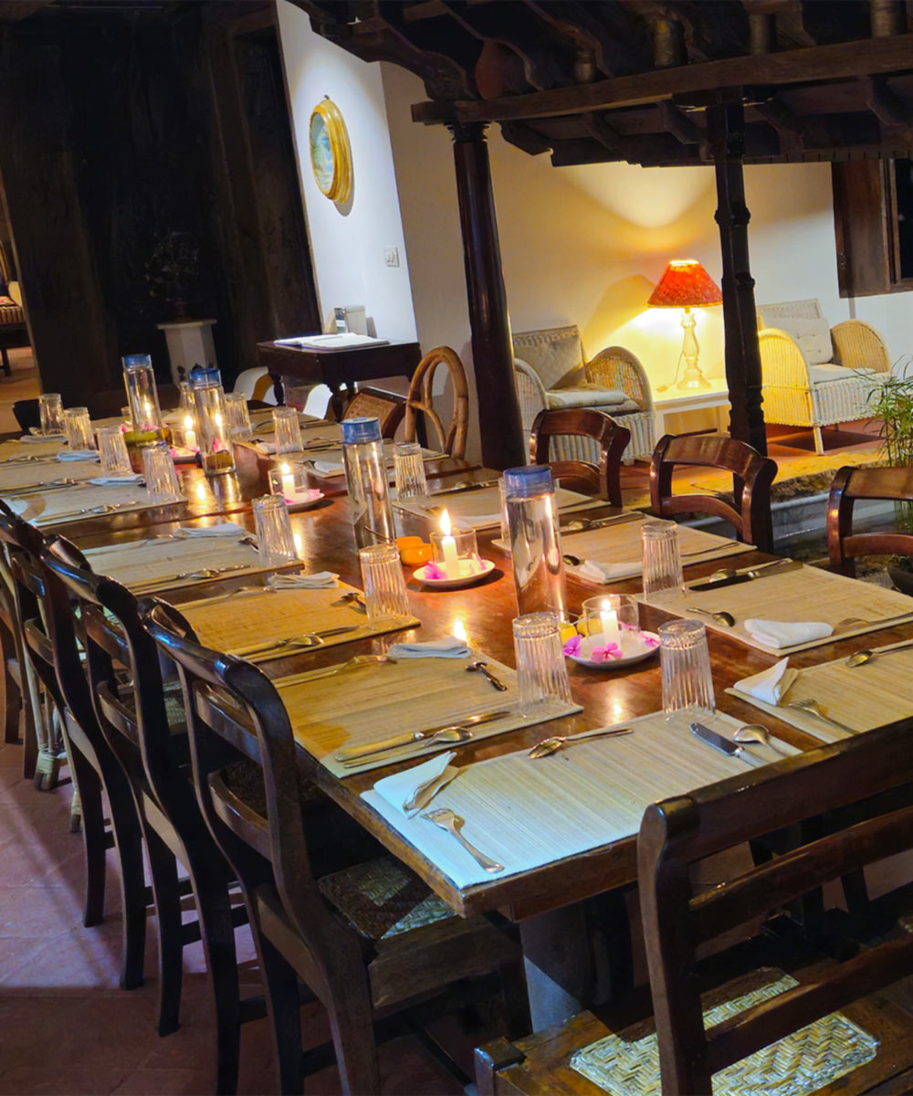 The food here takes you on a journey straight into the heart of southern Indian cuisine. Home-cooked using organic ingredients from the onsite farm, the traditional meals are served in the shade of the abundant trees.