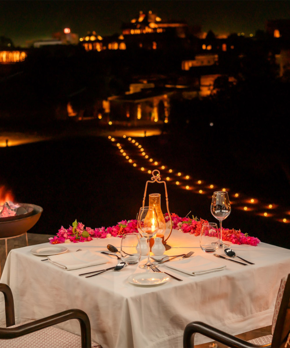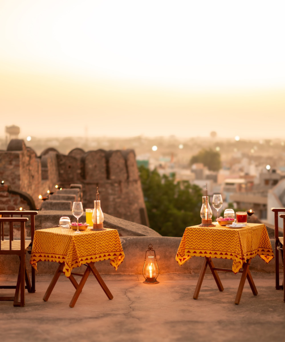 Jewel-toned cushions provide a splash of colour in an otherwise calming space. Explore the fort, visit nearby temples, and embark on excursions in the Thar Desert. When you’re done, settle in for a rest by the pool, on your private sit-out, or sip a chai on the ramparts.