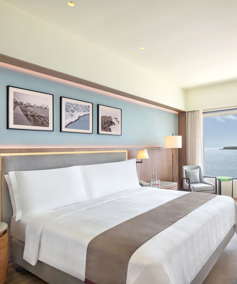 In Nariman Point, set high above Marine Drive in the south of Mumbai, the offers stunning views over the Arabian Sea, and is close to many of the city’s shops, art galleries and tourist sites. The hotel is an hour’s drive from the international and domestic airport.