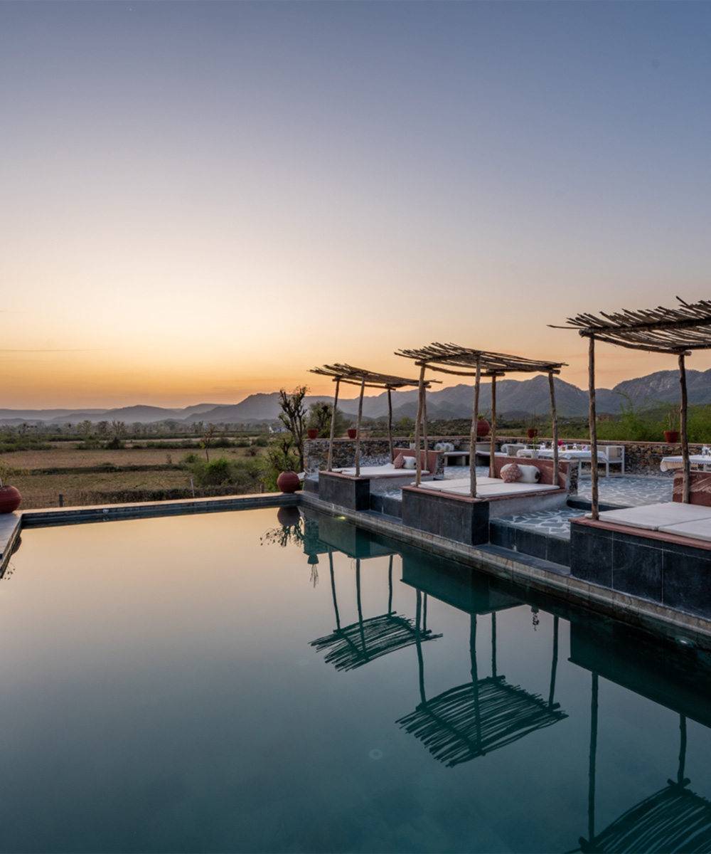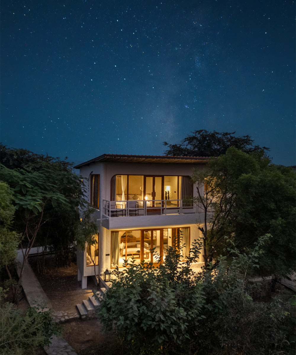Its luscious jungle, impressive wildlife, and rugged boulder-strewn scenery invite safari-style adventures. Back at the hotel, wake to birds chirping from elegant forest bungalows or stone cabins, where gentle earthen tones reflect the wild surroundings.