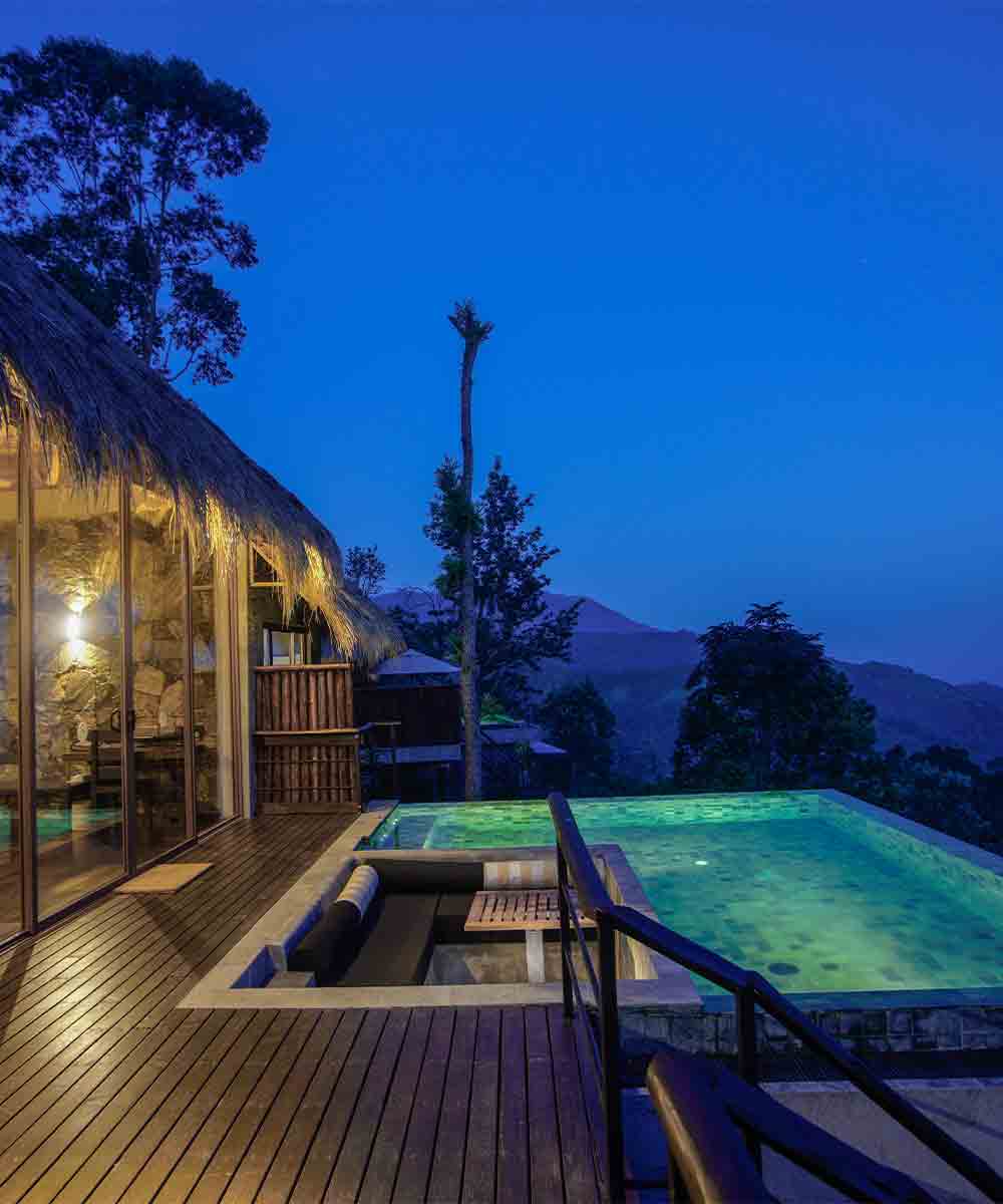 Unlike many of the historic and converted tea planters bungalows in the region, 98 Acres is arguably a little more contemporary in design with the use of granite, polished cement floors and roofs of bamboo and Illuk straw. We love their use of more sustainable construction methods. Discarded railway sleepers are used for walls, paving and even furniture.