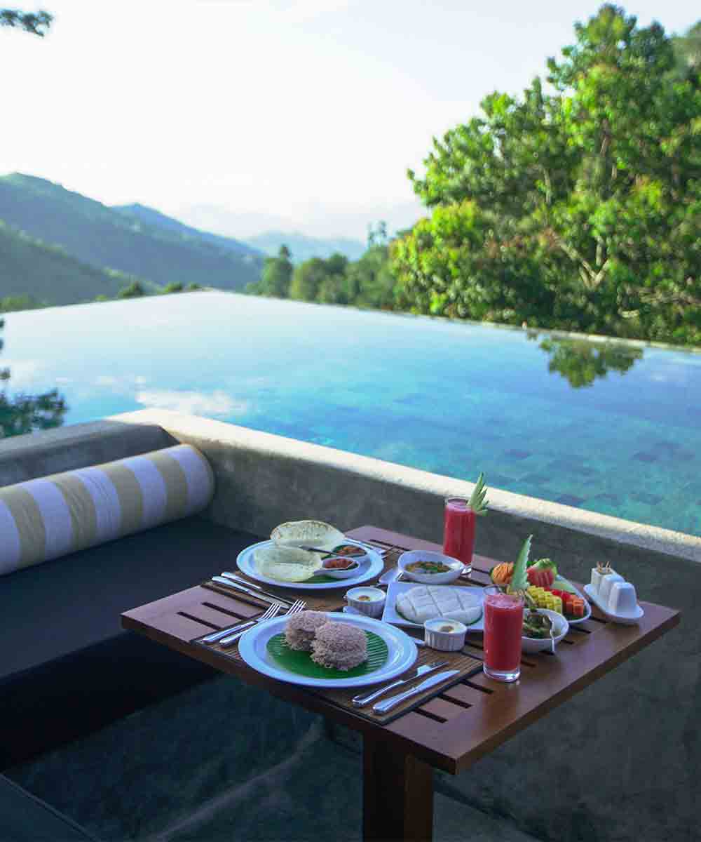 98 Acres Resort is a 36 room eco-friendly hotel near Ella with the most magnificent views of the southern tea plantations, Ella rock and Little Adam’s Peak.