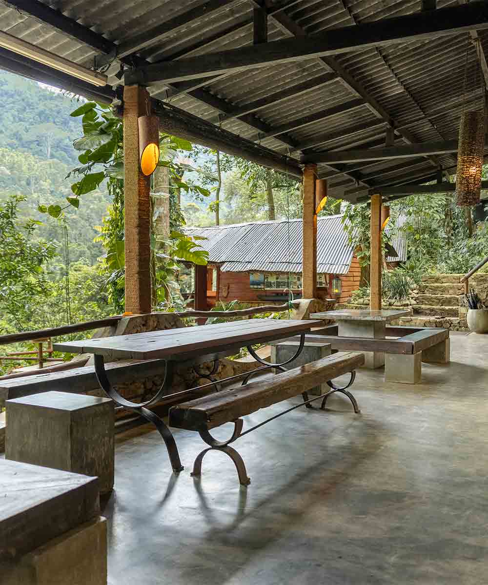 Accommodation at Borderlands is simple and in keeping with its rugged, outdoor setting. Guests can choose between accommodation types, all designed to immerse you in nature while providing basic comforts. The tents are set on stilted platforms with thatched roofs, these tents are positioned directly above the river, each with a private terrace offering stunning mountain views. Shared bathrooms with hot water showers are a short walk away.