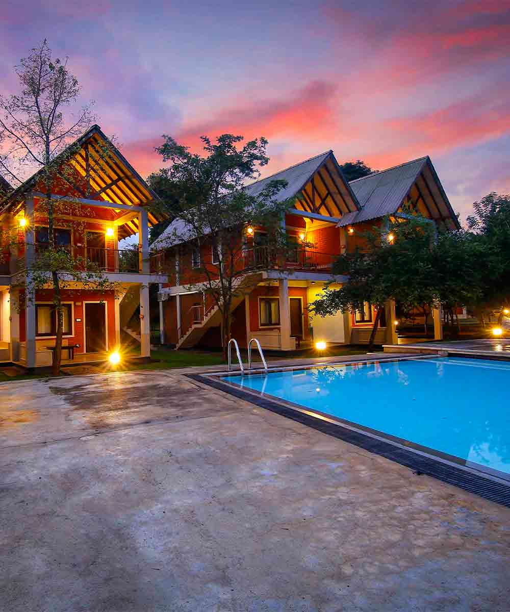 The resort offers 32 well-appointed ensuite bedrooms, housed in two-storey chalets, each with private verandahs that open to the swimming pool and expansive gardens. Ideal for those exploring the nearby Cultural Triangle, Elephas Resort provides a tranquil sanctuary where guests can unwind with a refreshing swim or relax in the peaceful surroundings after a day of sightseeing. The hotel also boasts a small spa that offers a range of treatments using locally sourced ingredients and traditional techniques.