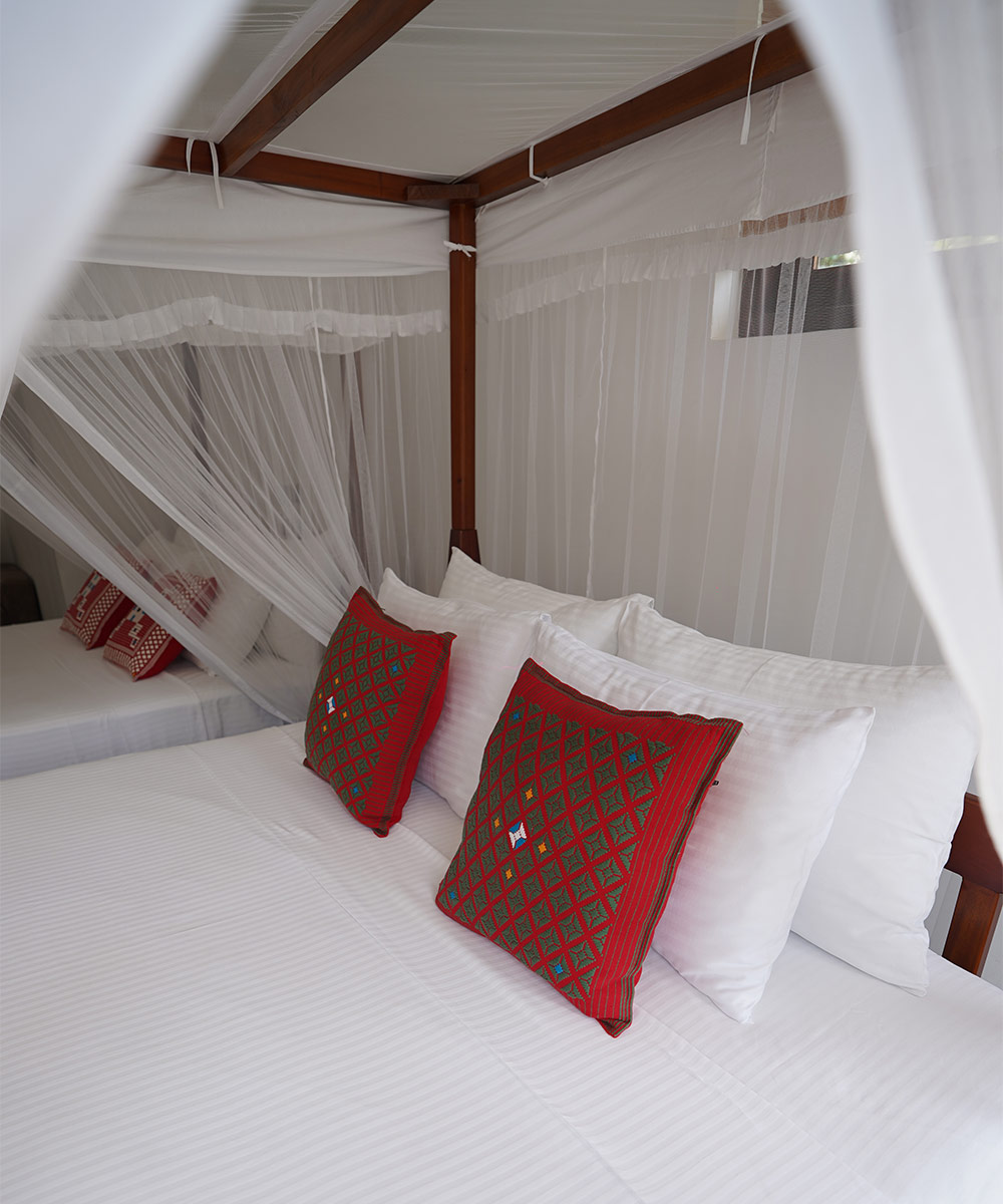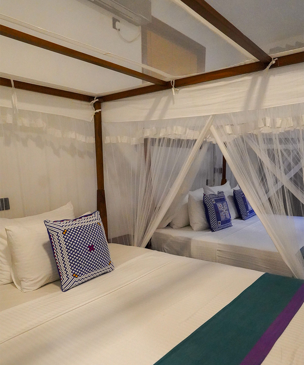 Two double rooms on the upper level open onto spacious balconies with sweeping vistas, while a twin and a triple room below offer tranquil forest views. Each is tastefully furnished with four-poster beds draped in crisp white linen, mosquito netting, and ceiling fans, with ensuite bathrooms featuring hot water showers. A serene retreat into nature, Hanthana House is best suited for those who appreciate peace and scenic beauty. However, its hillside setting and steep stairways make it less ideal for young children or guests with mobility concerns. For those who venture here, it promises a refined and authentic Sri Lankan experience.