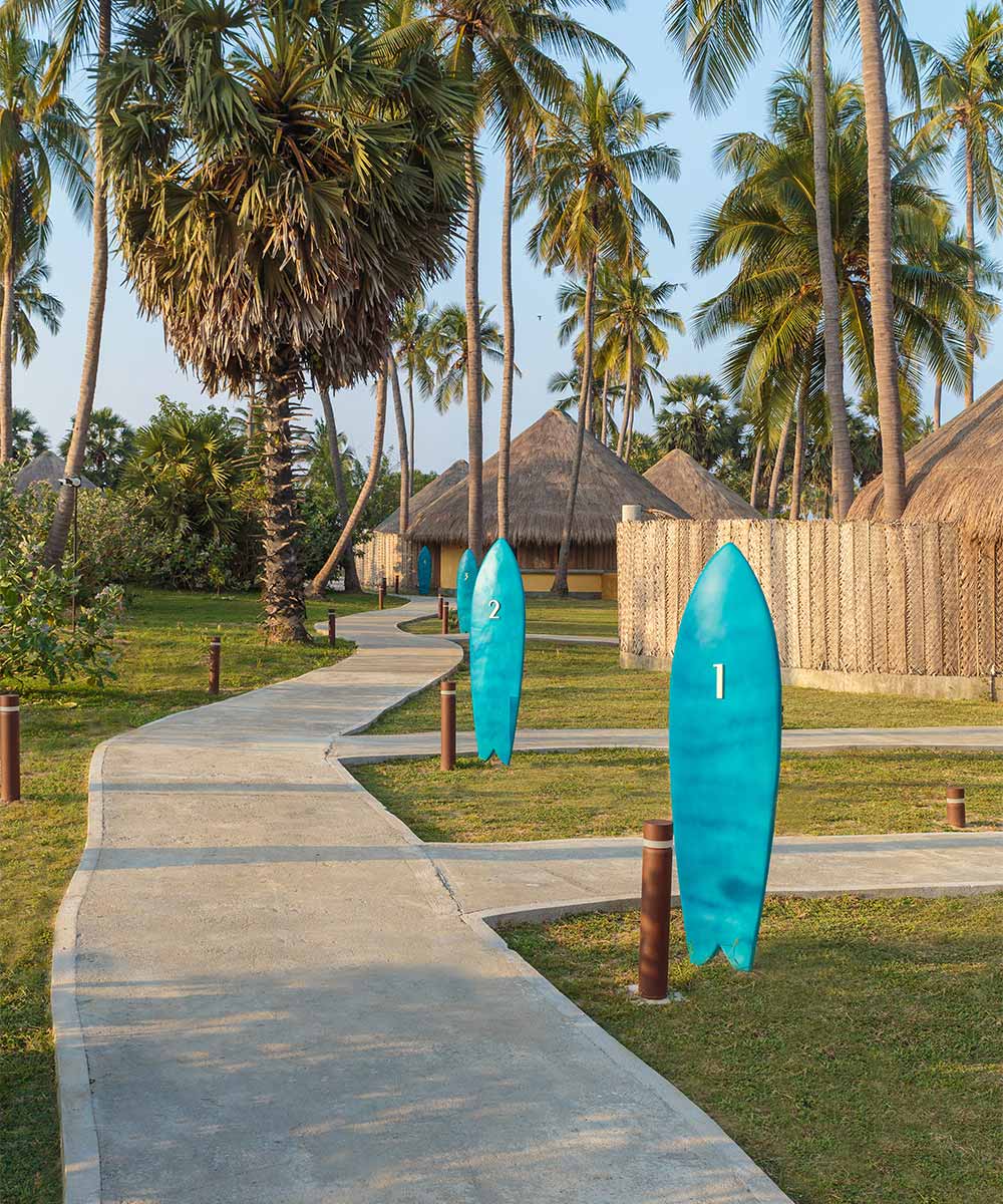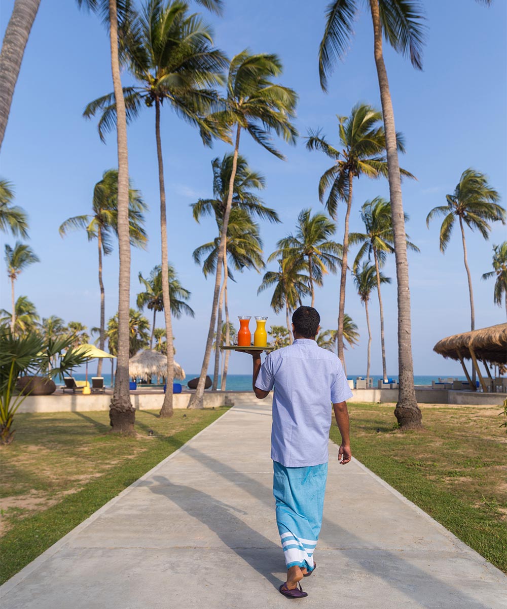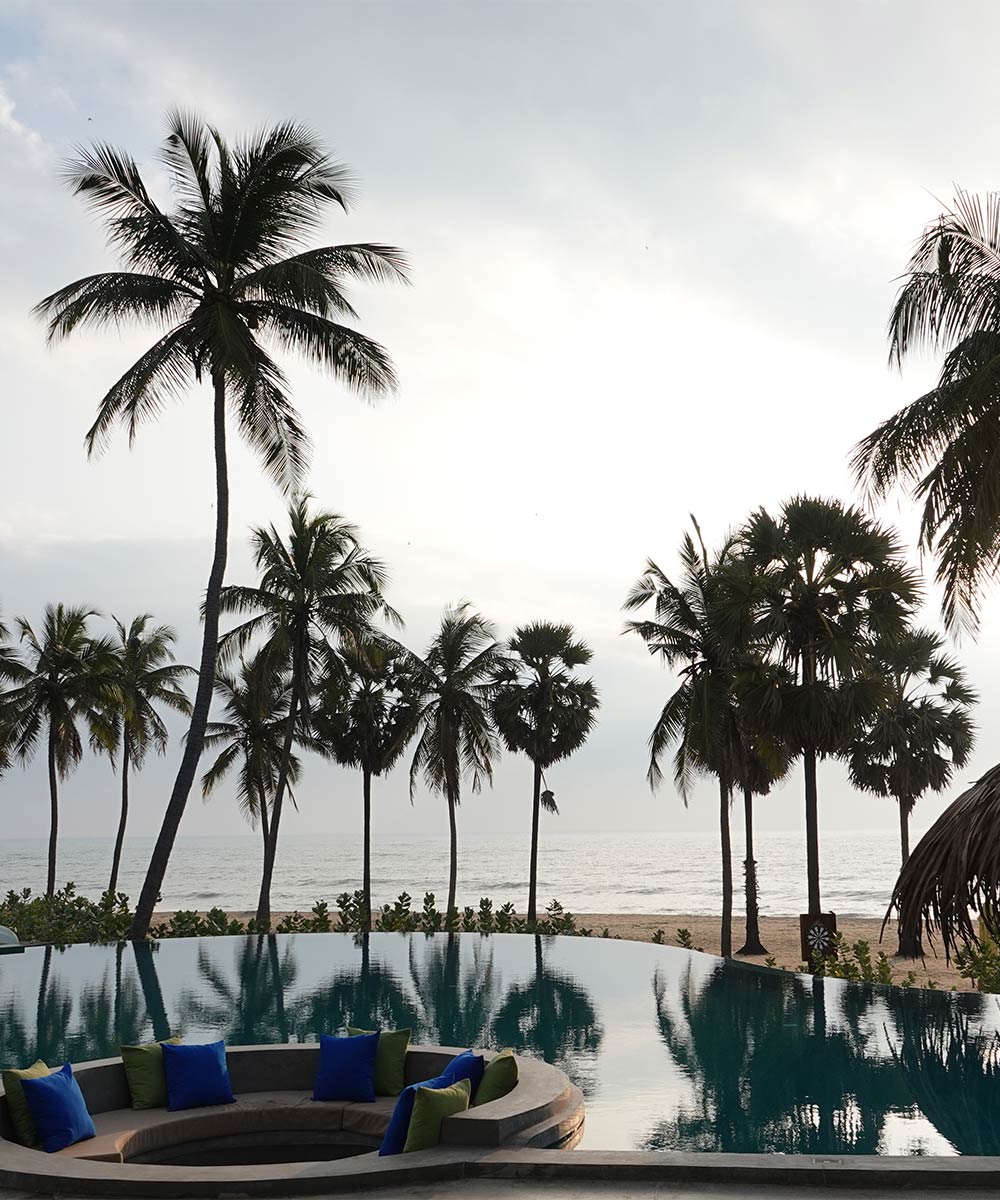 Perched on Pottuvil Point on Sri Lanka’s east coast, Jetwing Surf is a lush, eco-friendly cabana resort that brings the beach right to your window.