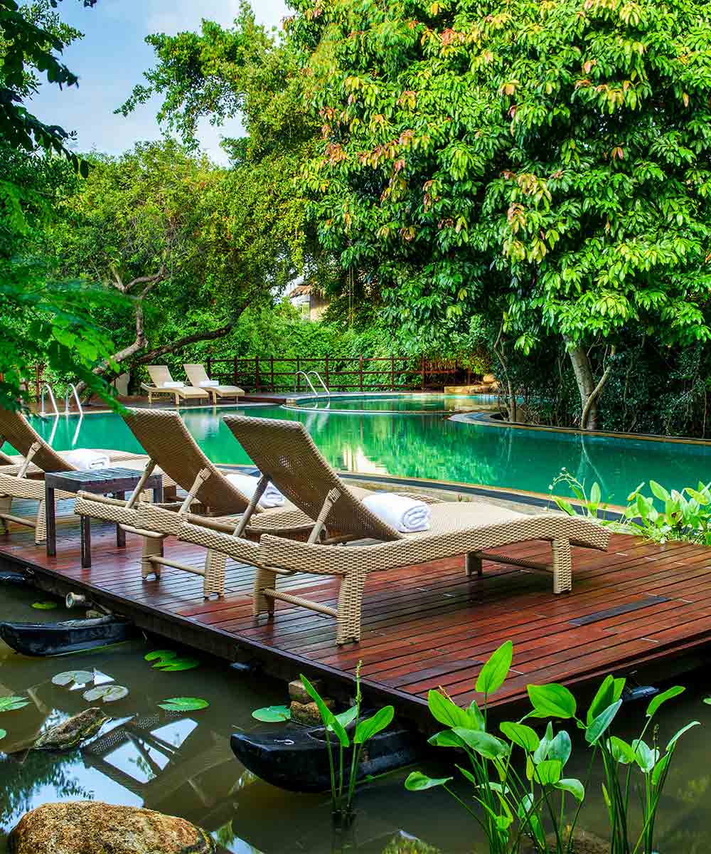 The interiors combine rustic charm with luxury, including open-air rain showers, private terraces, and plunge pools. The restaurant, nestled in the heart of the jungle, offers an immersive dining experience, where guests can feel as though they are dining in a treetop sanctuary. For those interested in outdoor activities, the Indian Ocean provides ample opportunities for whale watching, snorkelling, and sea fishing, while the resort’s gym and spa offer relaxation for those preferring dry land. Guests can also explore local cultural and historical sites, such as Lover’s Leap and the Temple of a Thousand Pillars.