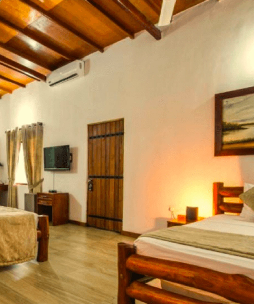 Families are warmly welcomed, and the peaceful environment makes it an ideal base for both wildlife enthusiasts and those seeking a restful escape close to nature. Accommodation at Kalu’s Hideaway consists of 14 simple but well-appointed rooms and suites, each offering serene garden views. Interiors are simple but thoughtfully designed, featuring king-sized beds or large single beds close to queen-sized dimensions. Modern amenities include air conditioning, overhead fans, satellite TV, tea and coffee-making facilities, and electronic safes. The ensuite bathrooms are equipped with hot-water showers, ensuring comfort and convenience after a day of exploring the nearby Uda Walawe National Park.