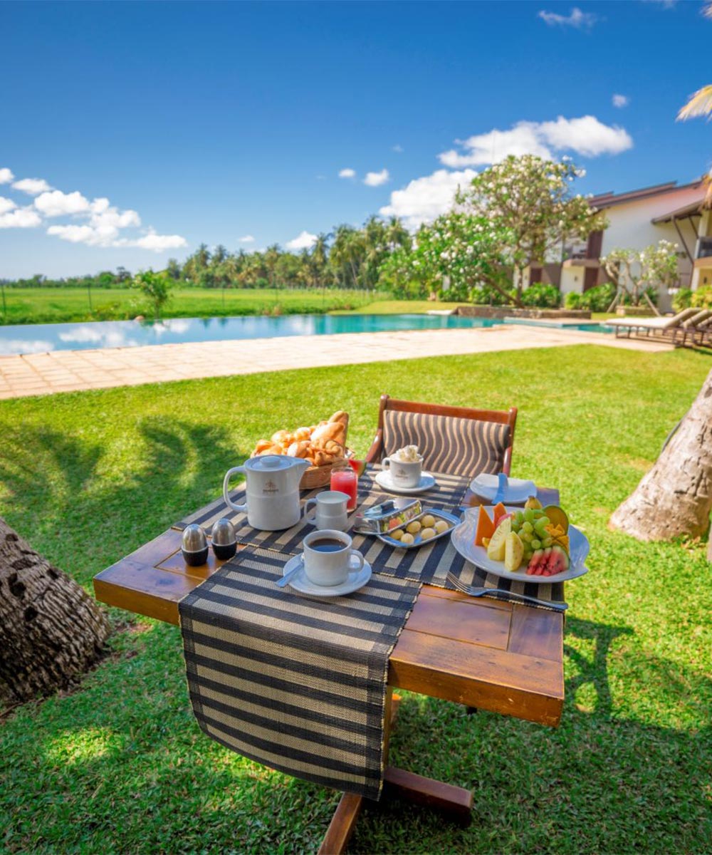 Its tranquil location makes it an excellent choice for nature and wildlife enthusiasts, especially given its proximity to Yala National Park. The 40-room resort features private balconies furnished with colonial-style cane chairs, where guests can unwind while watching birds and enjoying views of nearby rice paddies.