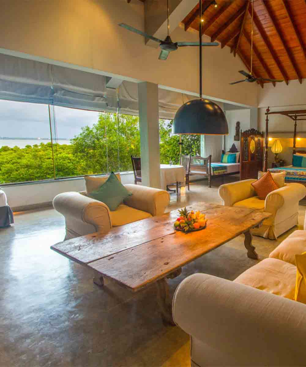 With its warm hospitality and tranquil setting, Villa Hundira offers a delightful escape for those looking to relax after a long journey or explore the natural beauty and rich culture of Sri Lanka.Villa Hundira is a 12-bedroom boutique villa overlooking the picturesque Negombo Lagoon on the north-west coast. It is a modern yet characterful villa nestled amidst two acres of lush tropical gardens and edged by the tranquil Negombo Lagoon. Interiors are a stylish blend of contemporary architecture and furniture, art, and sculptures from Sri Lanka and the orient.