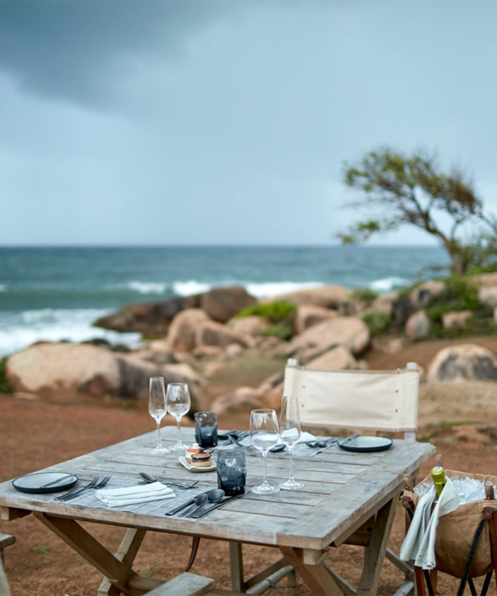 The interiors, with teak floors, freestanding copper bathtubs, and safari-style furnishings, evoke the romance of an expedition camp while ensuring contemporary luxury. The open-air bamboo dining pavilion serves contemporary Sri Lankan cuisine, with fresh seafood and seasonal produce taking centre stage. Whether relaxing by the freeform infinity pool, indulging in a spa treatment inspired by the wilderness, or dining under the stars, guests can experience the raw beauty of Yala without compromising on comfort. Beyond its distinctive design, Wild Coast Tented Lodge offers expert-led game drives into Yala, where sightings of leopards, elephants, and sloth bears are fairly frequent.