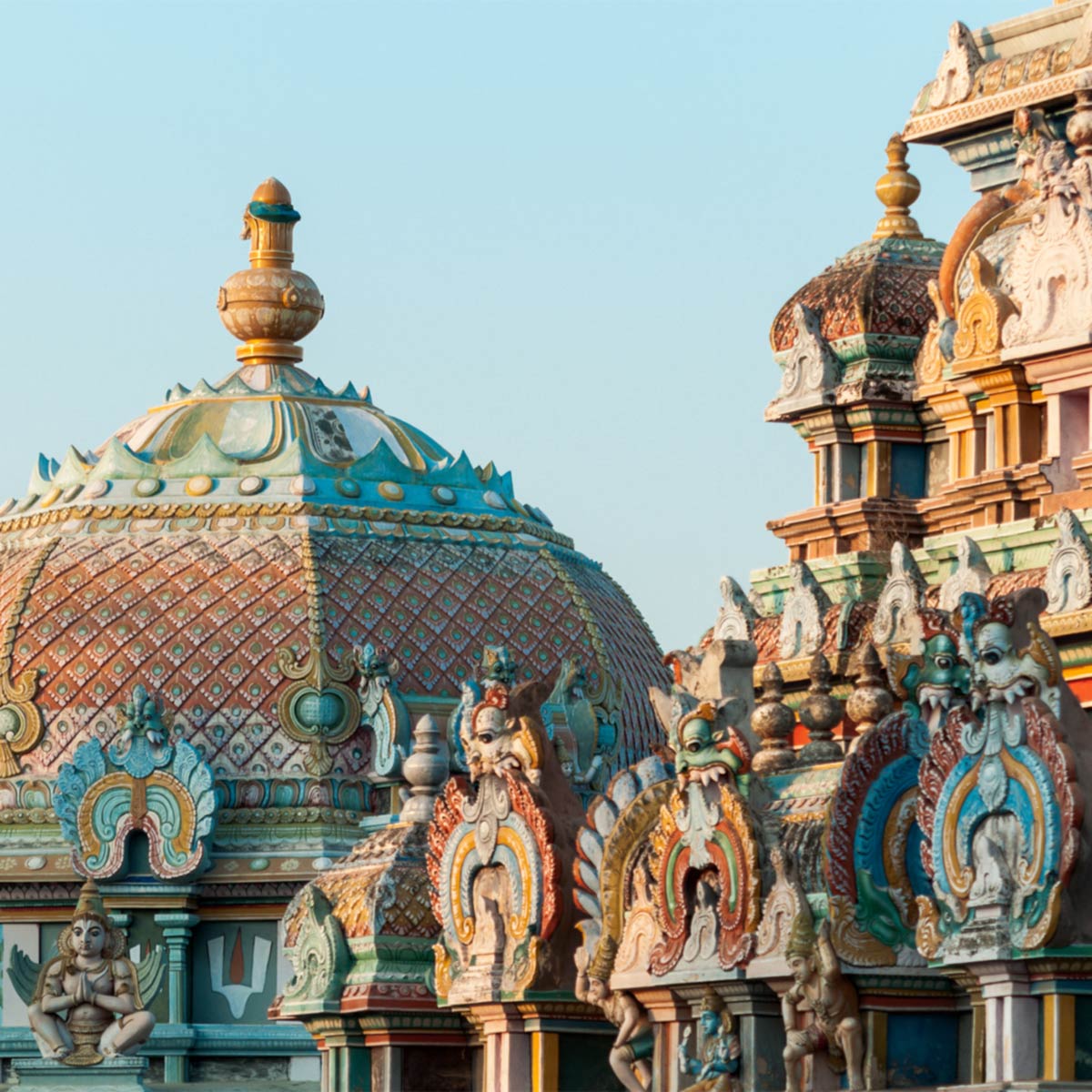 Tamil Nadu offers lush green landscapes punctuated with towering colourful gopurams and intricately carved ancient temples. Here, dancing gods meet French colonial influences in places like Pondicherry's tranquil promenade and Madurai's energetic Meenakshi Amman Temple, creating a journey through thousands of years of history.