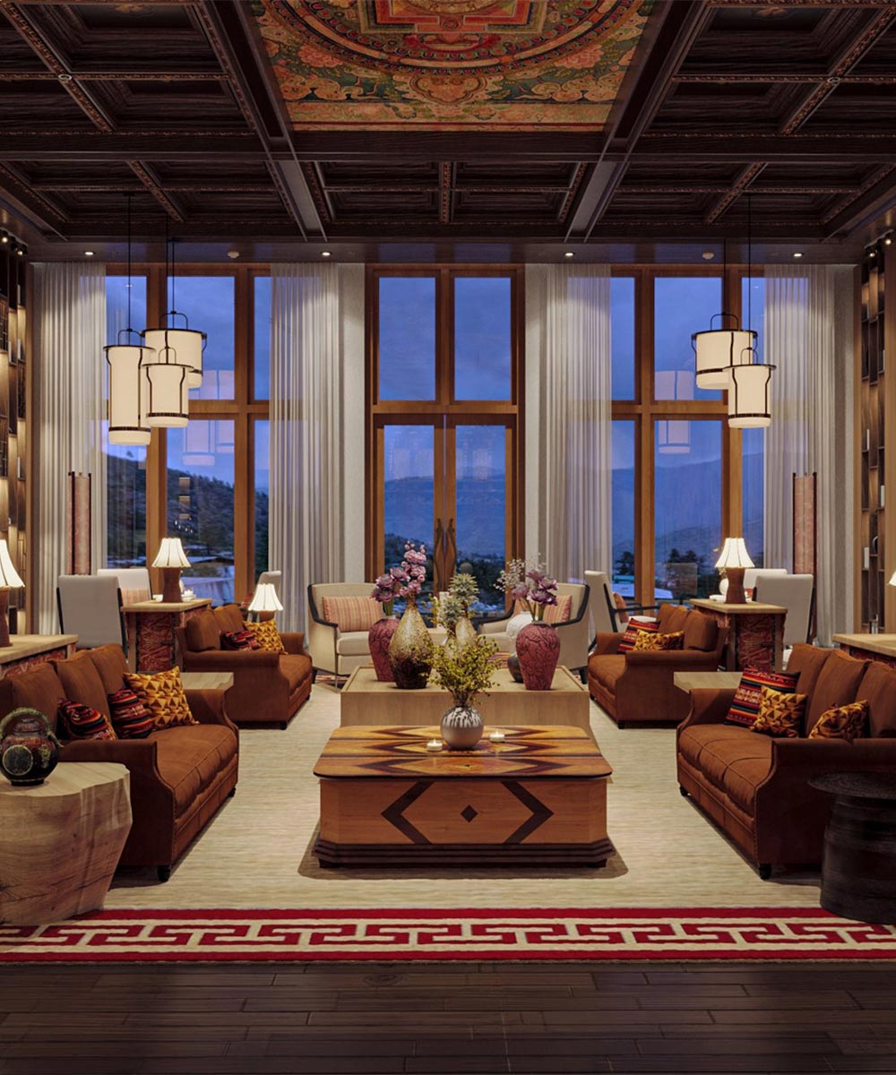 - Interiors that actively celebrate Bhutanese tradition and identity, from the richly coloured textiles to the intricately carved wooden motifs, creating uniquely expressive spaces.