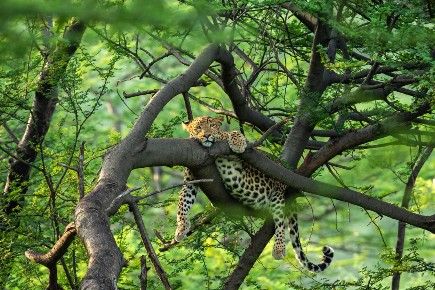 Two safari drives today criss-crossing the park watching deer, antelope and bison, you’ll be immersed in the forest, keeping your eyes peeled for predators including tigers, leopards, Indian wolves and jackals, who may nonchalantly appear, strolling past the plethora of jungle-clad temples.See- Morning and evening safari drives