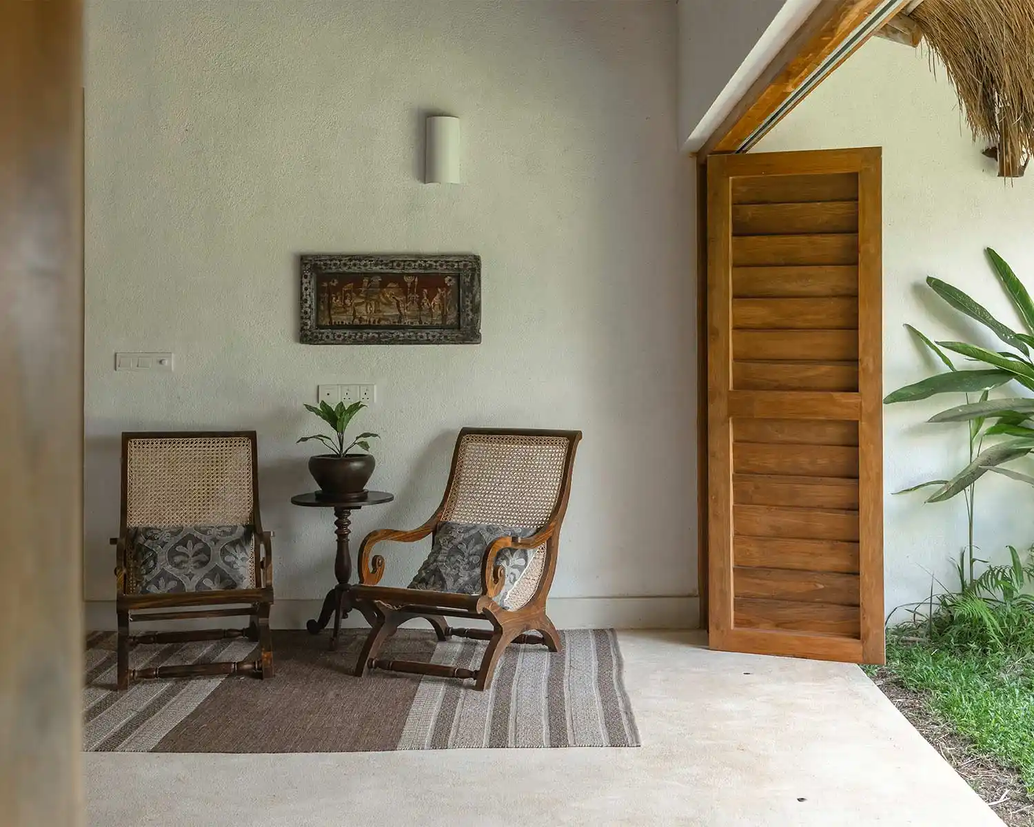 The lodge was created by British owners Charlie and Richard, who set out to build something that felt natural to the landscape rather than imposed on it. The buildings use locally sourced and sustainable materials, including thatch, and the style throughout is simple but very thoughtful. One of the things we noticed straight away was the furniture. It is raw, natural and stylish at the same time, with pieces that feel handcrafted and perfectly suited to the setting. Richard and Charlie are passionate, showing their guests around the plantation, nearby Koggala Lake and their masterpiece – The Tekanda Foundation.
