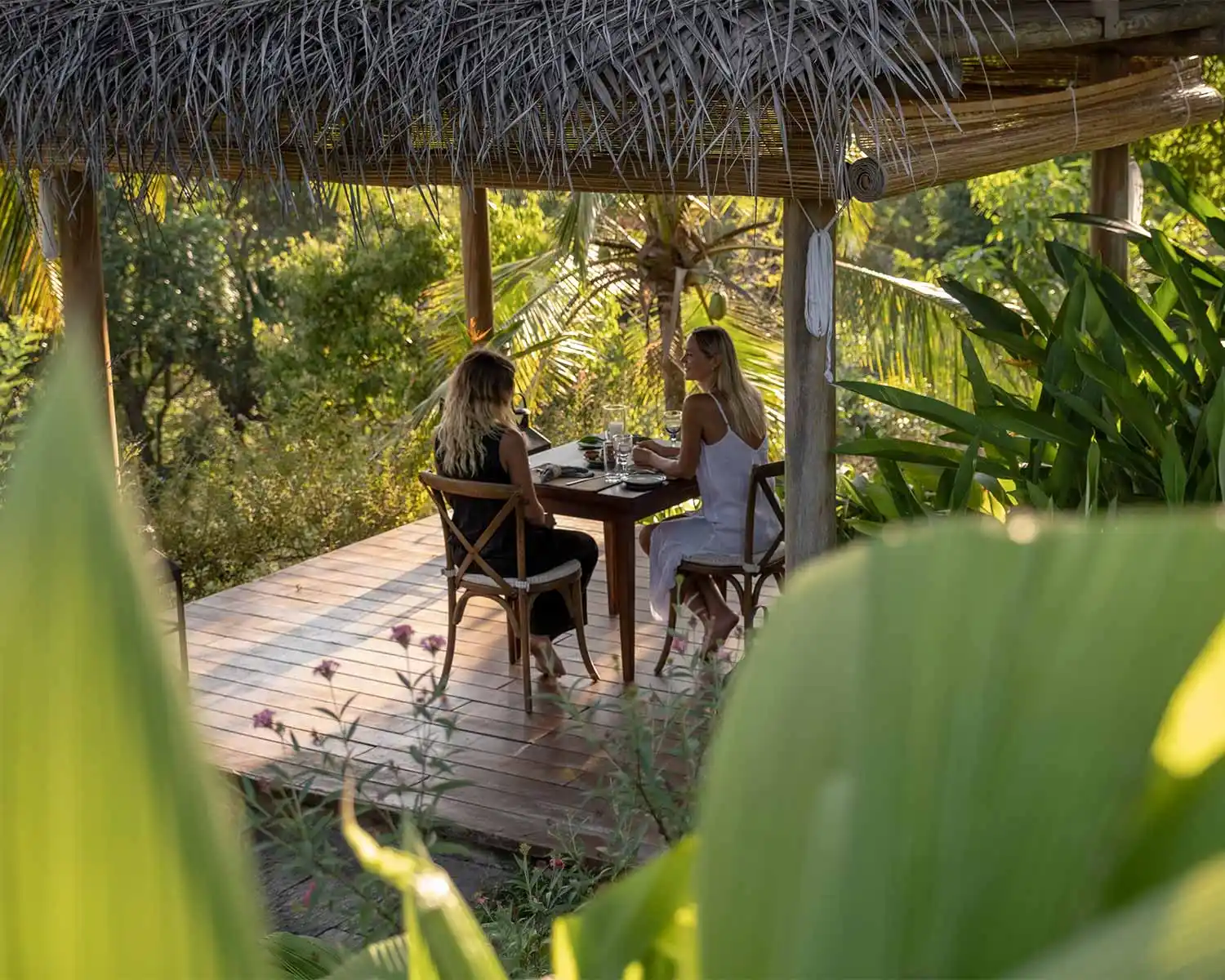 Dinner is often a communal affair, which we love. Guests gather around the table and the atmosphere is relaxed and sociable. It is one of the things that gives Tekanda its character. For those that prefer dining by themselves, this is possible anywhere on the land, and due to the high quality restaurants nearby many of our guests also choose to dine out.