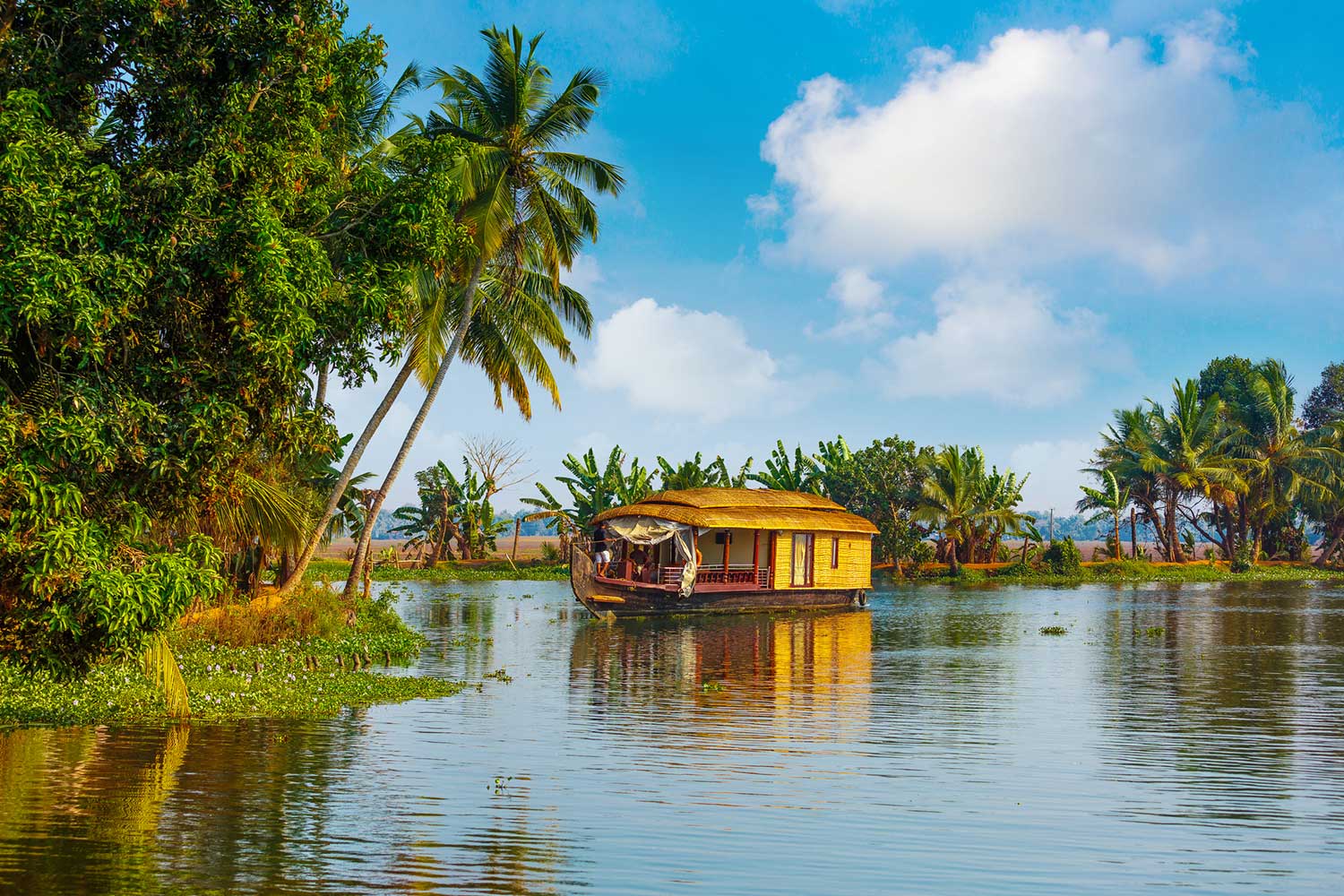 A morning walking in the Periyar Wildlife Sanctuary jungle, serenaded by over 260 species of bird and on the lookout for Indian elephants, deer, wild boar, leopards, tigers and more. You’ll drive to Alleppey this afternoon, before boarding your houseboat and drifting the backwaters.