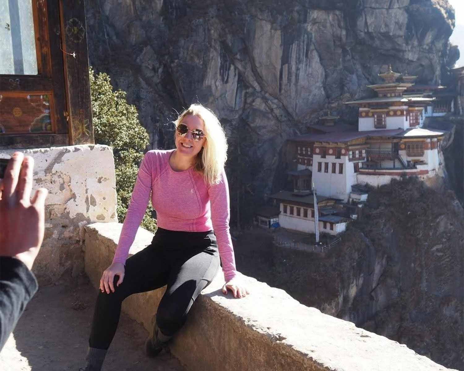 The climb takes a few hours through pine forest, with prayer flags and views across the valley appearing along the way. When the monastery finally comes into view, clinging to the rock face, it is quite an extraordinary sight.