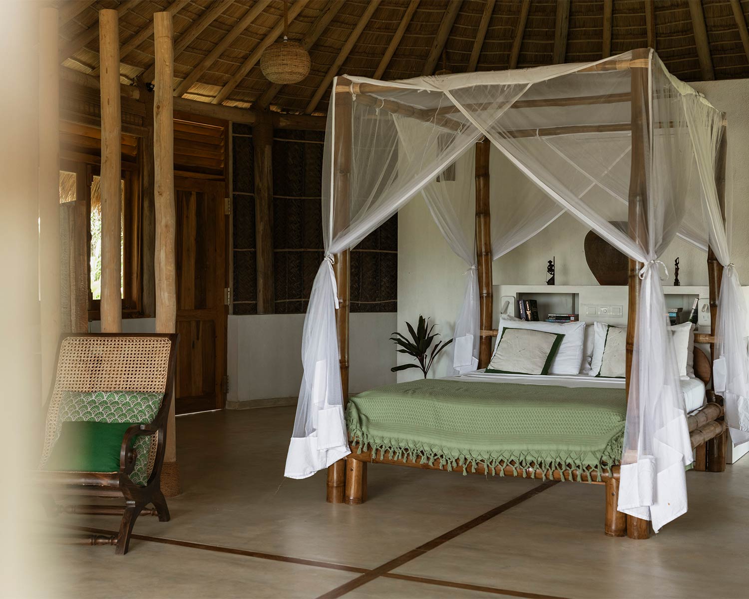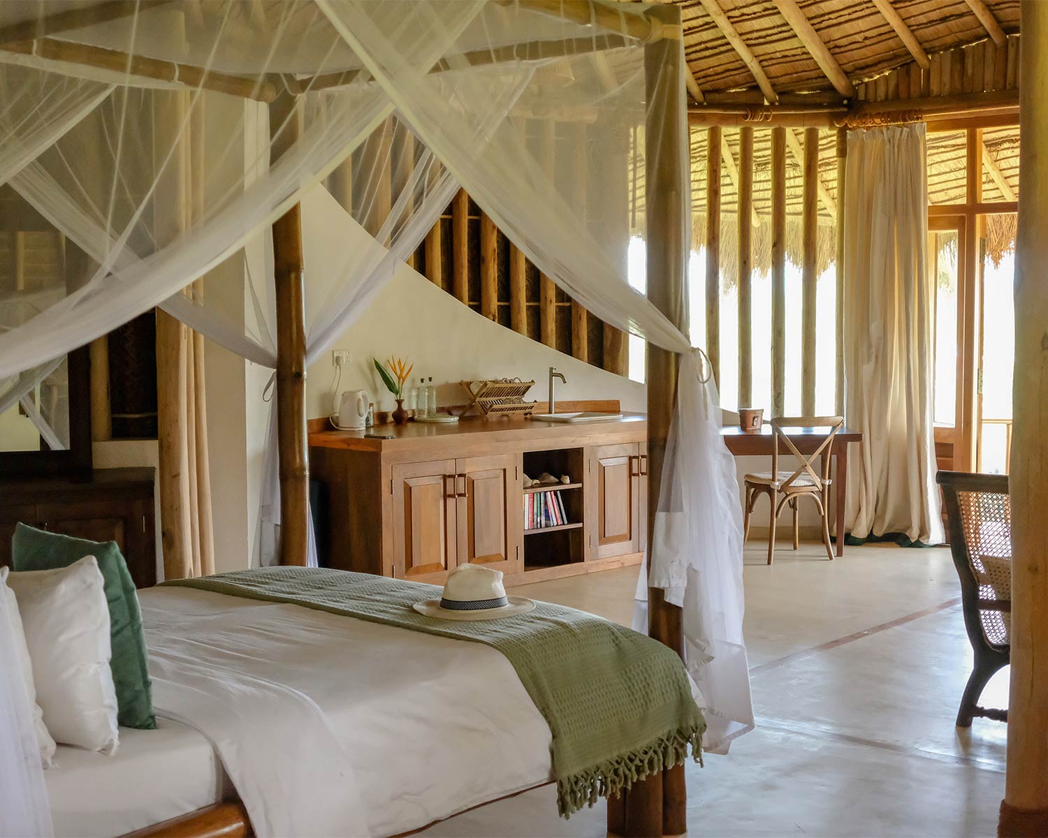 There are also two cabanas set slightly apart from the main lodge. These are beautiful, large, airy rooms with plenty of space for additional beds, which makes them a good option for families as well. The views from the cabanas are particularly good, looking out across the surrounding greenery and hills. We also recommend these for honeymooners or those wanting privacy – the balconies on the cabanas are breathtaking.