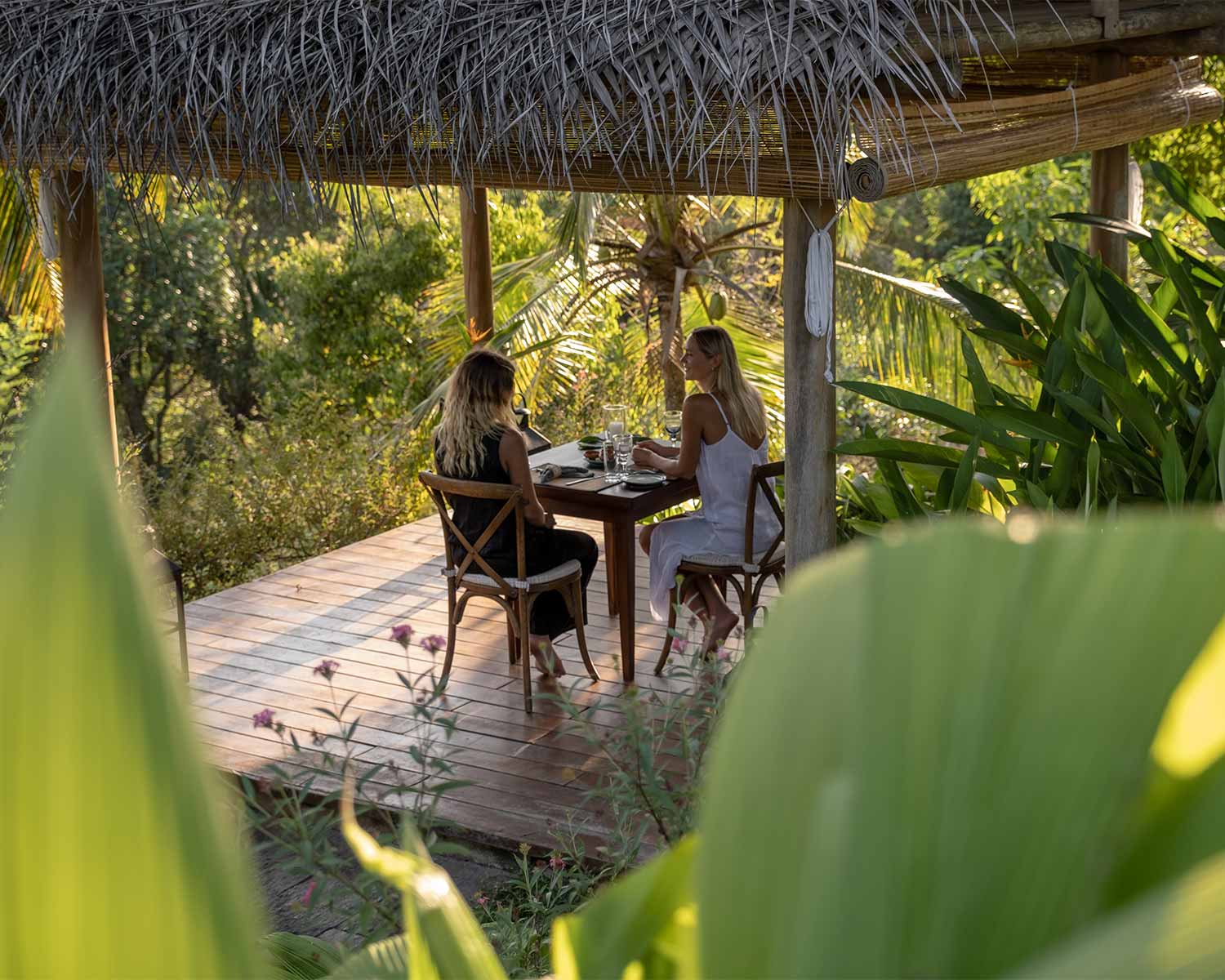 Dinner is often a communal affair, which we love. Guests gather around the table and the atmosphere is relaxed and sociable. It is one of the things that gives Tekanda its character. For those that prefer dining by themselves, this is possible anywhere on the land, and due to the high quality restaurants nearby many of our guests also choose to dine out.
