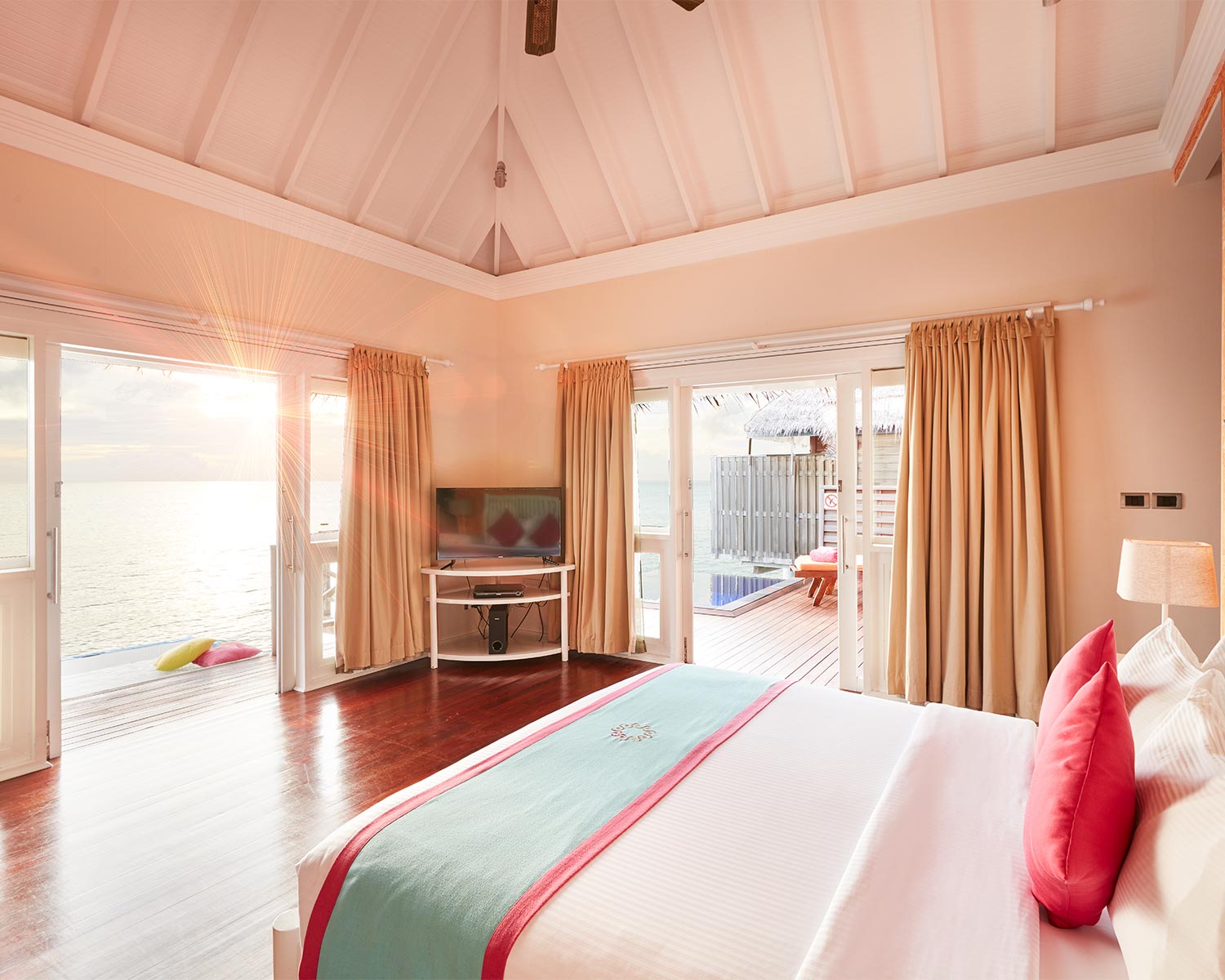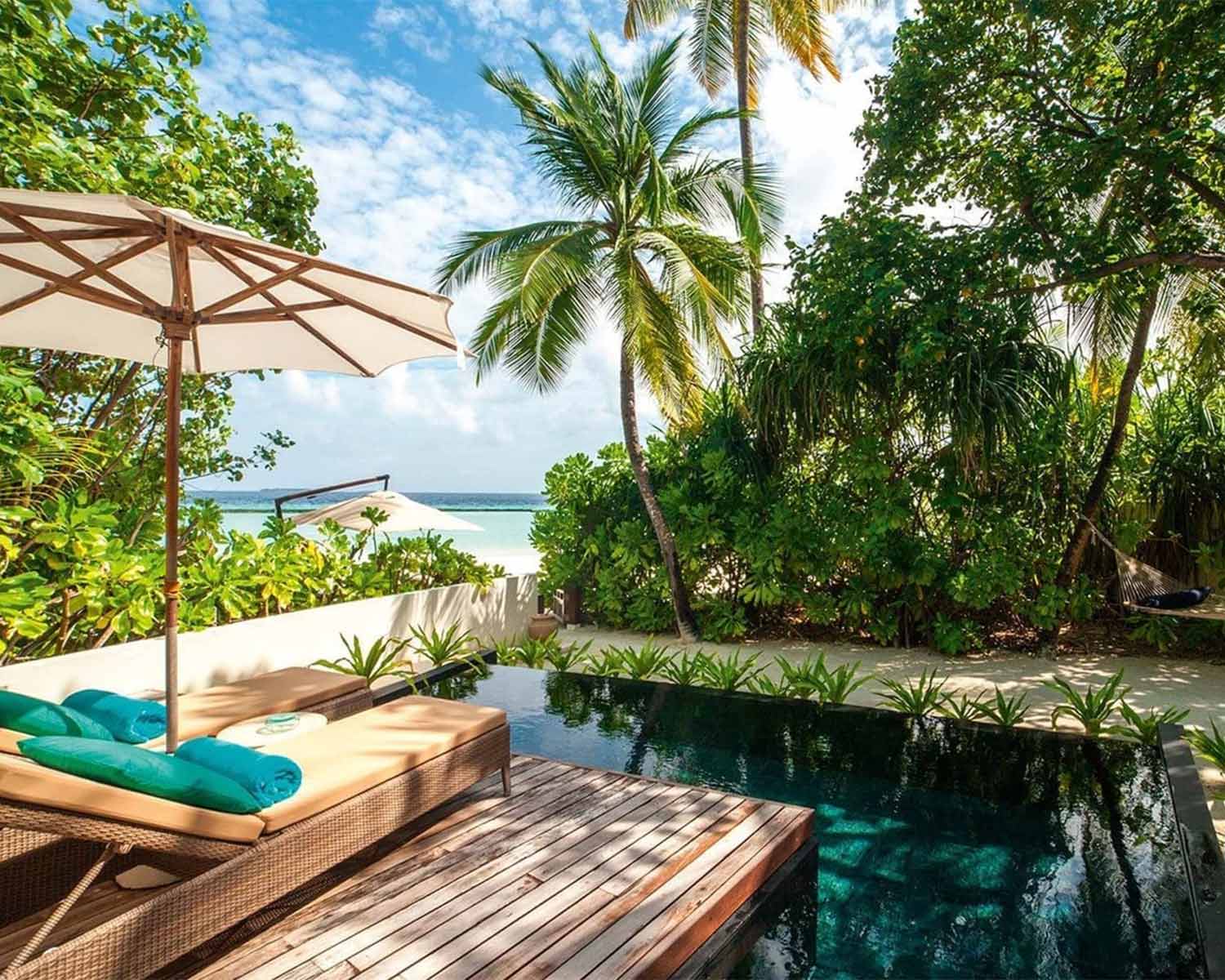 Overwater villas provide a heightened sense of separation, with uninterrupted ocean views and direct access to the lagoon below. At resorts such as Constance Halaveli and Velassaru, these villas are designed with generous proportions and expansive decks that encourage time spent both in and above the water. Orientation and spacing vary by island, making layout an important consideration for those prioritising privacy.