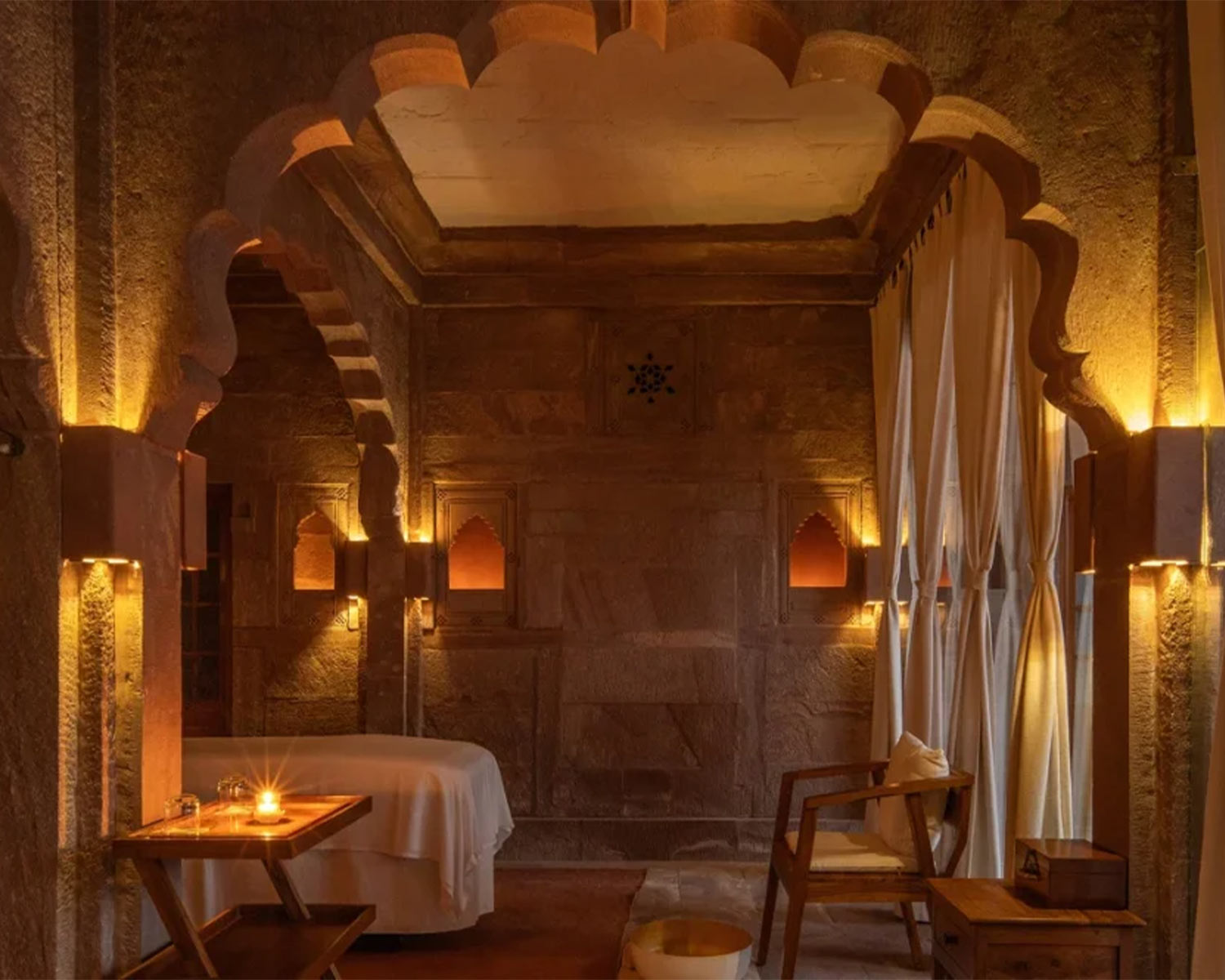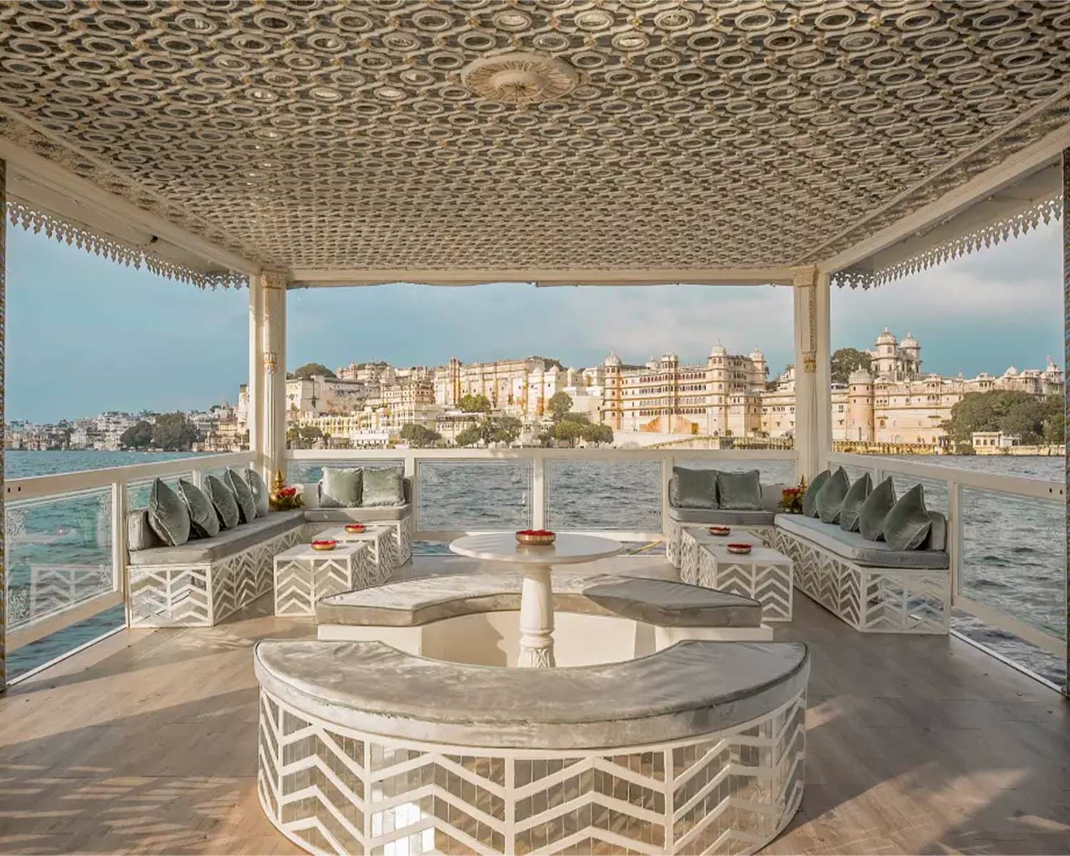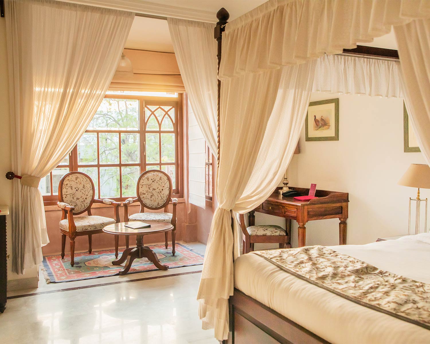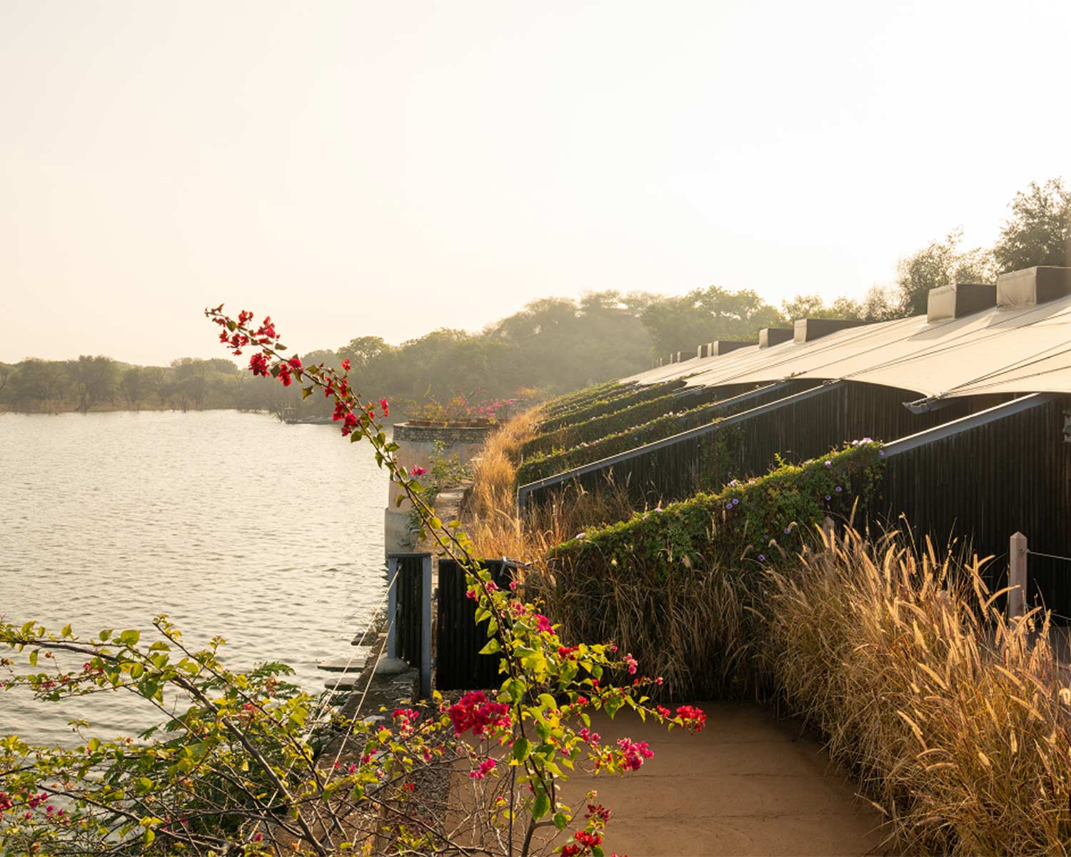 Right on the shores of Lake Pichola in Udaipur, Jagat Niwas is a restored 17th-century heritage haveli that sings of the city’s elegant, white Mewari style architecture. You’ll find jharokha balconies, carved stonework, graceful arches and antique furniture throughout, with an atmosphere that exudes quiet, traditional luxury. Sitting next to the Jagdish Temple and famed City Palace it’s fabulously situated for exploring Udaipur and offers breathtaking reflective views across the lake. Rooms are a temple to calm opulence with chandeliers, carved window seats and gentle palettes of soft pinks and greens echoing the lake outside. The highlight for most guests here is the roof terrace, where the rooftop pool and restaurant are a popular hub for spectacular views. For an intimate dining experience, the hotel also boasts a private boat allowing you to drift across Lake Pichola eating your meal to the atmospheric accompaniment of live traditional music.Sariska Lodge – Sariska Tiger Reserve