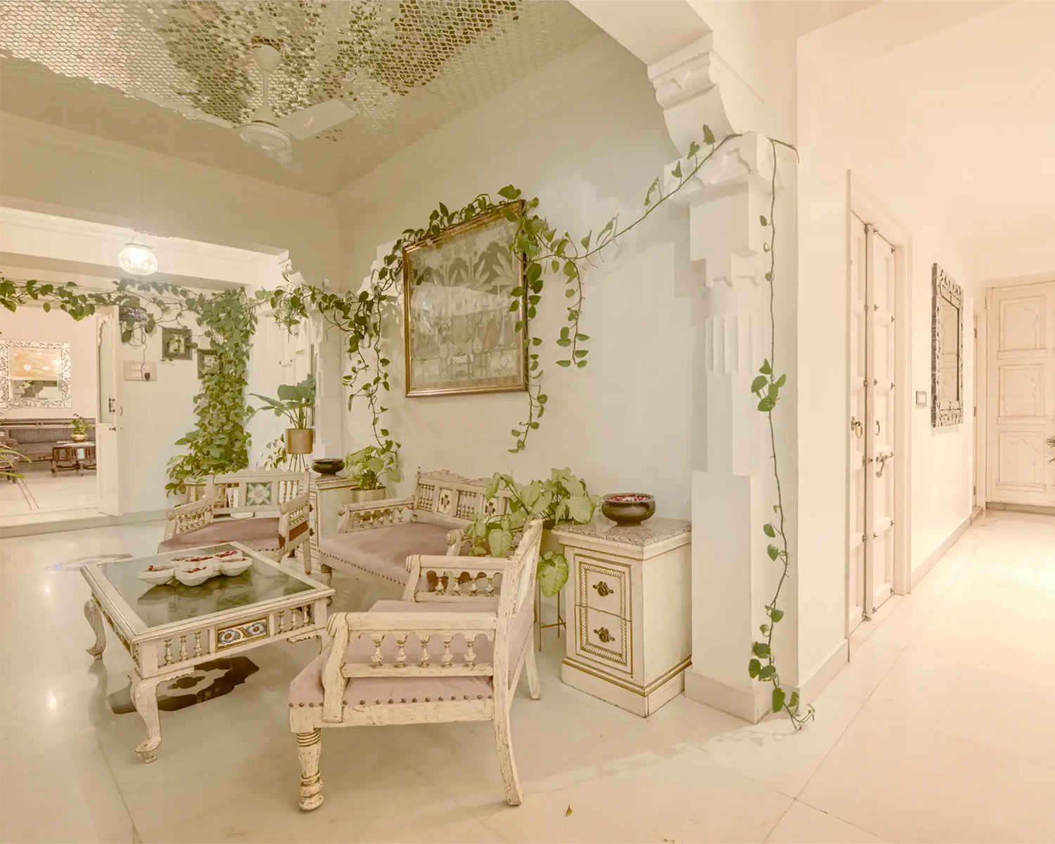 A stunning 19th-century haveli, originally built for the noble Samode family, arriving at Samode Haveli is akin to taking a step back in time to the opulence of the Maharajas. The entrance is a vast sloped gateway, purposefully created to accommodate the family’s arrival atop ornately adorned elephants. The welcome today is no less impressive. Step through the towering doorway and you are immediately struck by the intricate design, palatial layout and serene atmosphere.