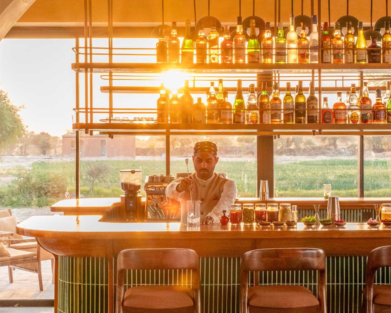 Guests are encouraged to connect with the local culture through hands-on cooking classes, guided farm tours, nurturing yoga sessions and plant-forward tasting menus. While there’s also plenty of time for lazing around the vast swimming pool, soaking up the melodic live music of the manganiyars or mindfully wandering among guava orchards.