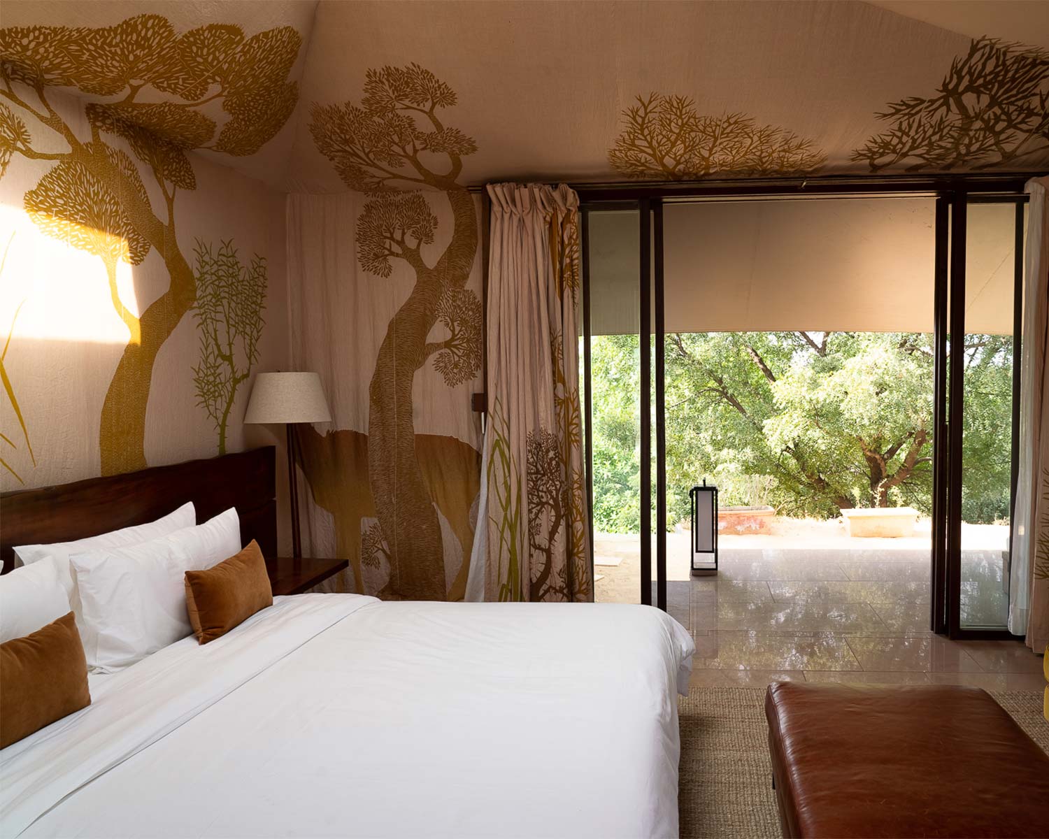 Spanning the breadth of the dam at Chhatra Sagar reservoir, RAAS Chhatrasagar is a permanent tented, lakeside camp established to replicate the splendour of the Rajputs’ mobile safari, field camps. Other than the canvas walls, there’s little tent-like about these suites, with their hand-painted wall murals, vast beds, choir flooring, teak furniture and pristine crisp linens. Each has its own terrace overlooking the tranquil water of the reservoir, facilitating lazy birdwatching of the over 250 species found here, from kingfishers and flamingoes to storks and bee-eaters.
